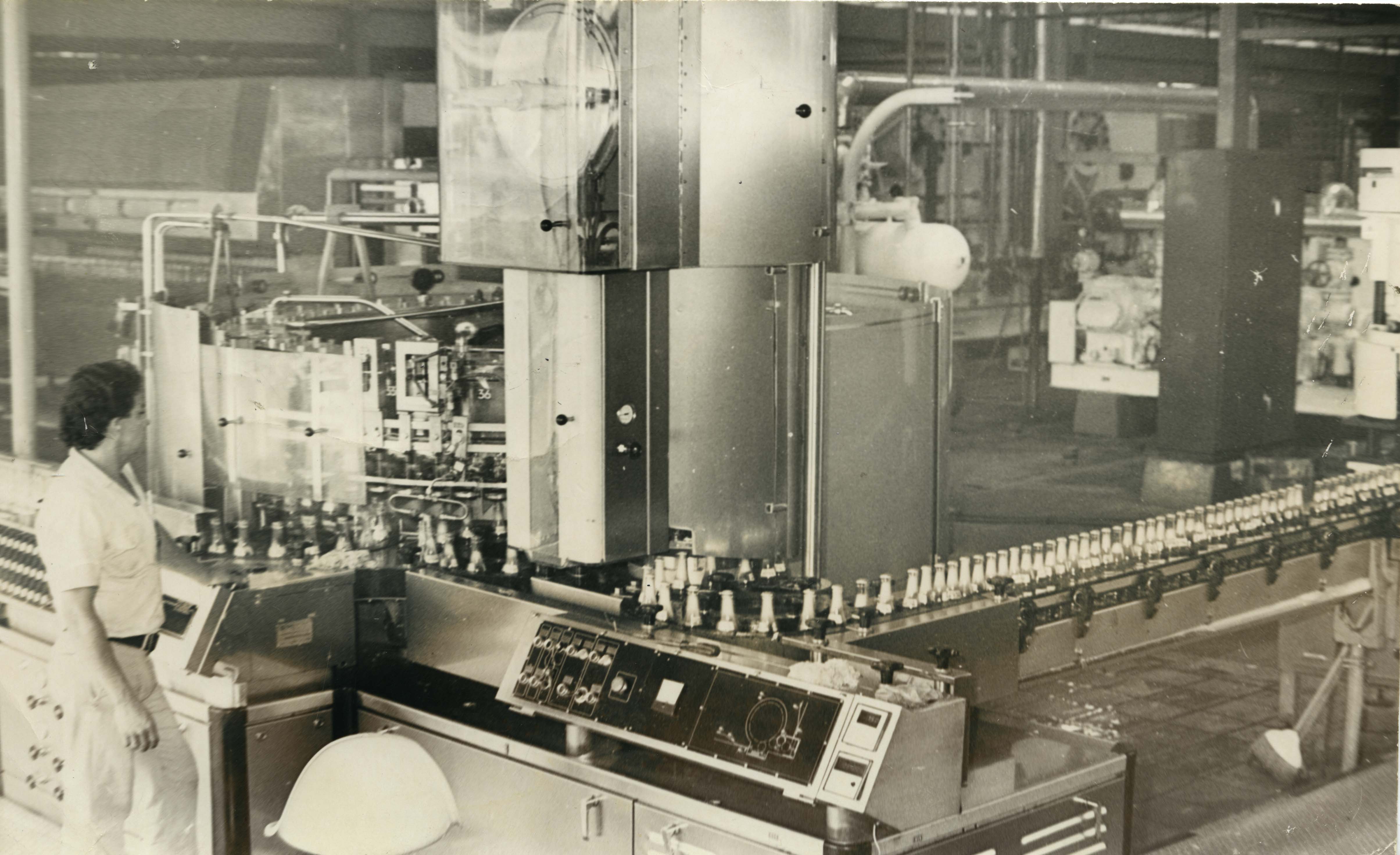 Máquina embotelladora de gaseosa, estas máquinas son automáticas y de fabricación Alemana / El Archivo del Patrimonio Fotográfico y Fílmico del Valle del Cauca es responsabilidad de la Biblioteca Departamental del Valle Jorge Garcés Borrero, por convenio de cooperación suscrito con la Secretaria de Cultura Departamental, con el fin de aunar esfuerzos para su conservación, preservación y divulgación del Archivo entre la comunidad Vallecaucana, especialmente entre los estudiantes e investigadores que visitan la Biblioteca, propiciando el su uso y consulta permanente. La universidad Icesi es un colaborador en el proceso de difusión, facilitando la tecnología que permite la consulta de las imágenes.