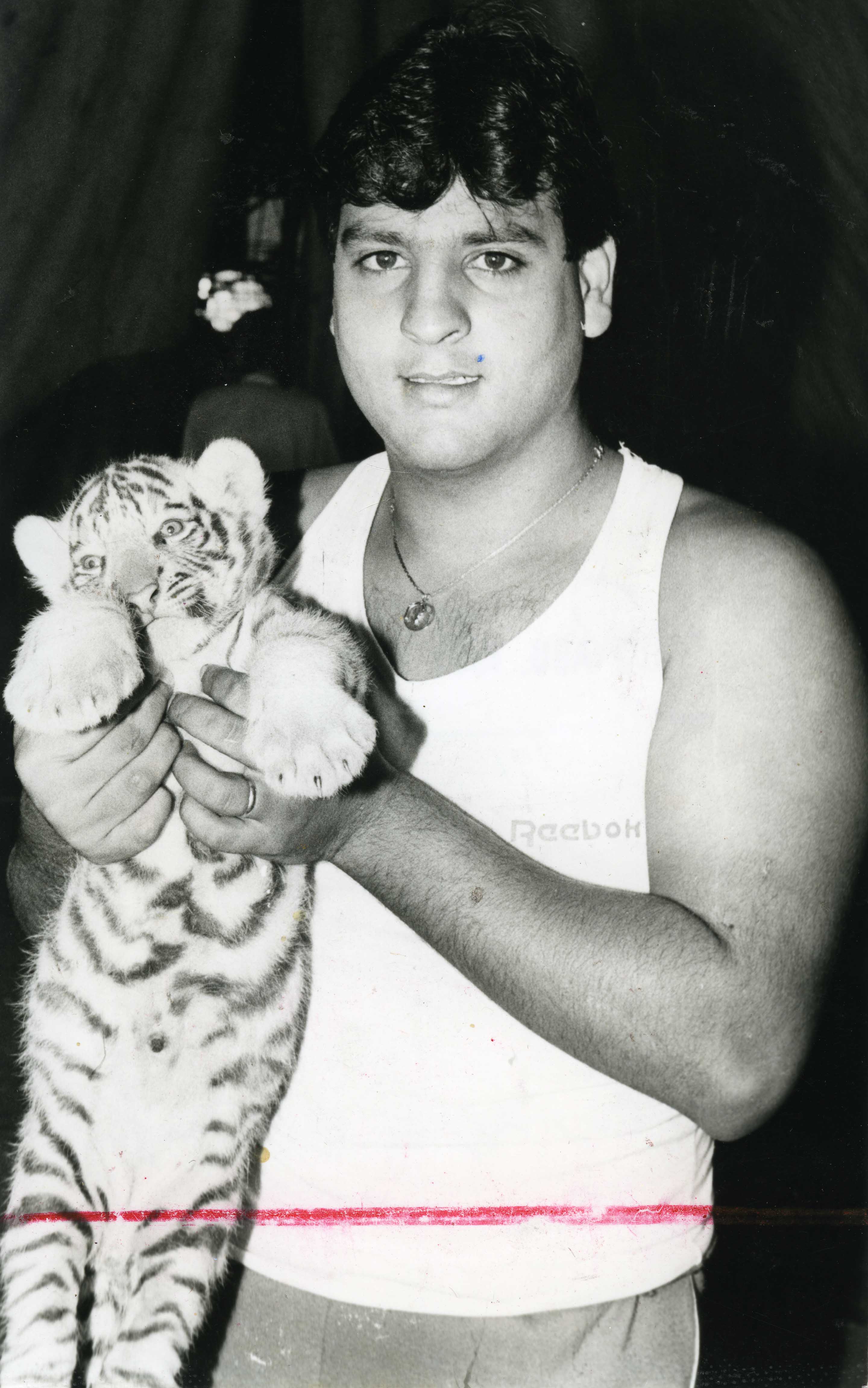 Bautizo de cachorro del tigre blanco nacido bajo las carpas del circo King Bros. Se le dio el nombre de caleñito en agradecimiento a la ciudadanía caleña // El Archivo del Patrimonio Fotográfico y Fílmico del Valle del Cauca es responsabilidad de la Biblioteca Departamental del Valle Jorge Garcés Borrero, por convenio de cooperación suscrito con la Secretaria de Cultura Departamental, con el fin de aunar esfuerzos para su conservación, preservación y divulgación del Archivo entre la comunidad Vallecaucana, especialmente entre los estudiantes e investigadores que visitan la Biblioteca, propiciando el su uso y consulta permanente. La universidad Icesi es un colaborador en el proceso de difusión, facilitando la tecnología que permite la consulta de las imágenes.