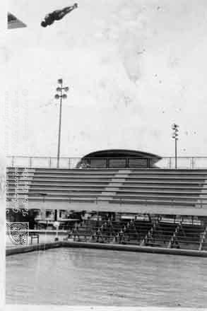 Salto del trampolín en las piscinas Olímpicas Alberto Galindo. Cali. 1954.