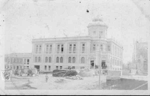 s. n. & s. n. (1900). Edificio del Palacio Municipal, al frente materiales para obras & 502832. OTRO: Biblioteca Departamental Jorge Garces Borrero.