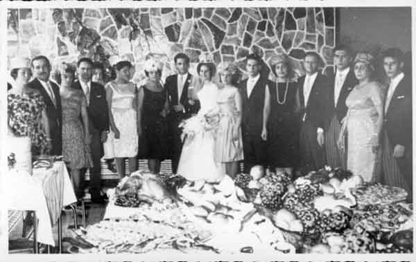 Grupo de amigos y familiares en el matrimonio de Alvaro Acosta y Gloria Cruz. Tuluá, 1962.