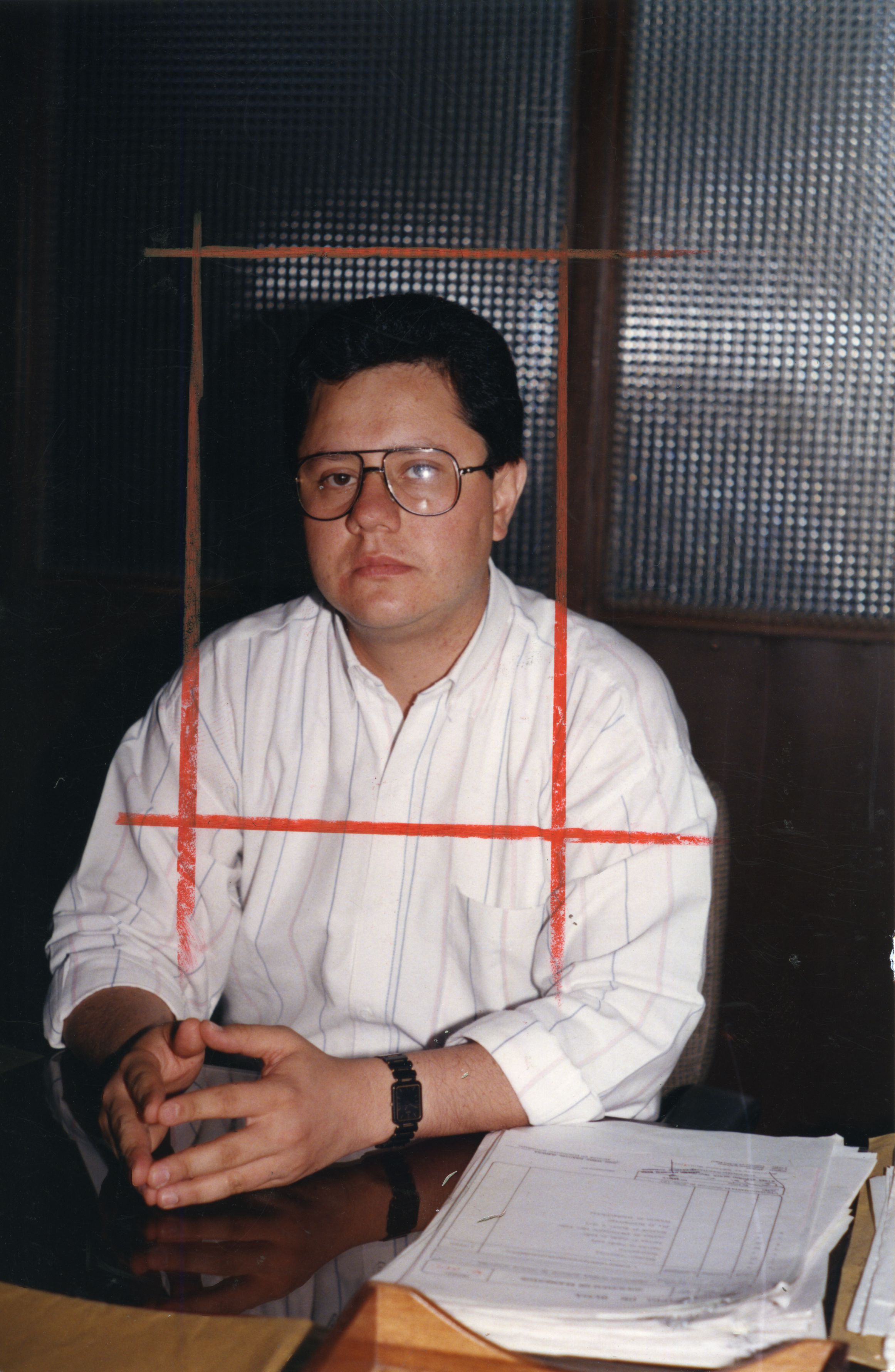 Rafael David Arana secretario general del municipio de Guadalajara de Buga, sentado revisando unos documentos.