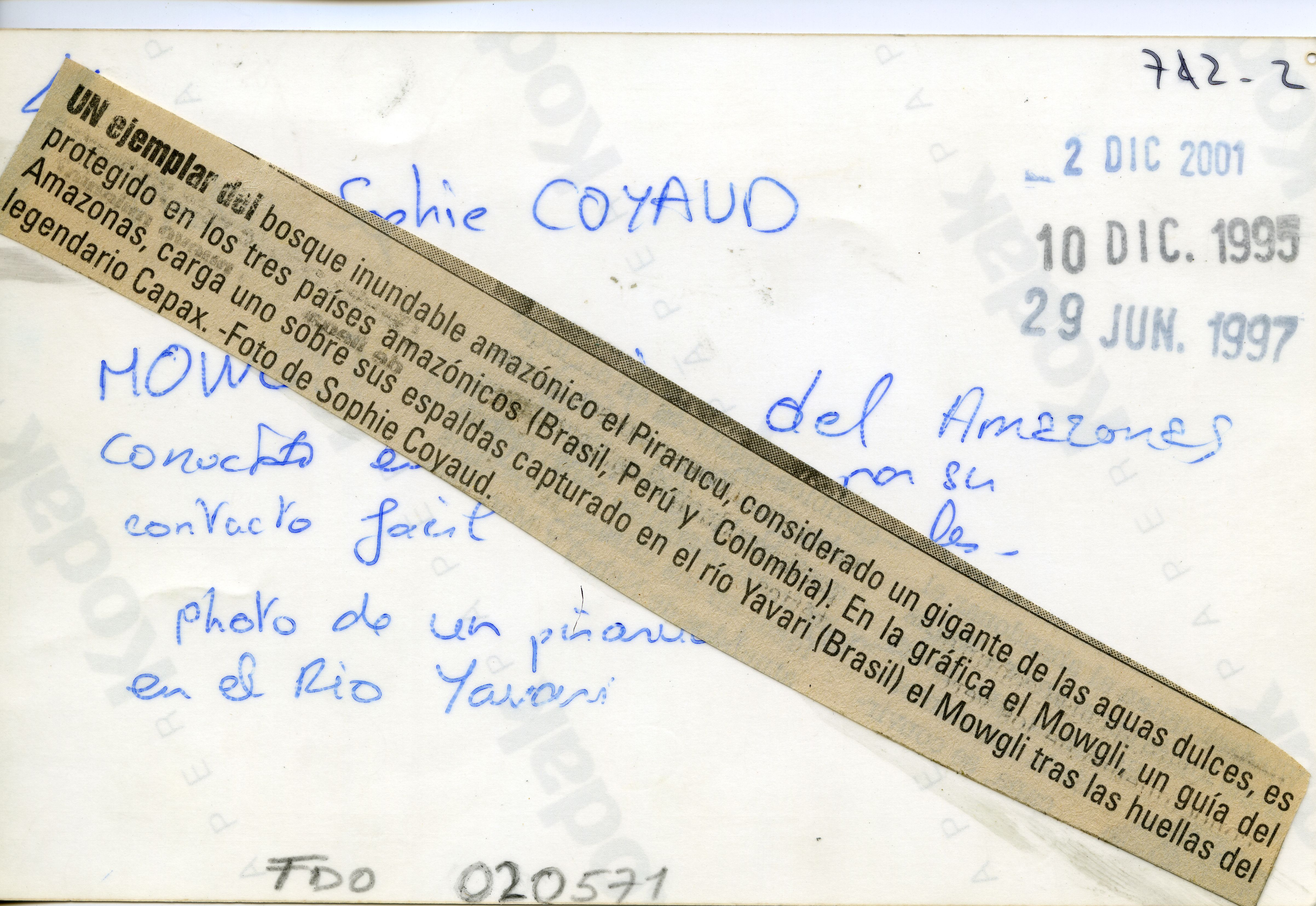 Reverso: Un ejemplar del bosque inundable amazónico el Pirarucú, considerado un gigante de las aguas dulces, es protegido en los tres países amazónicos (Brasil, Perú y Colombia). En la gráfica el Mowgli tras las huellas del legendario Capax - Foto de Sophie Coyaud.