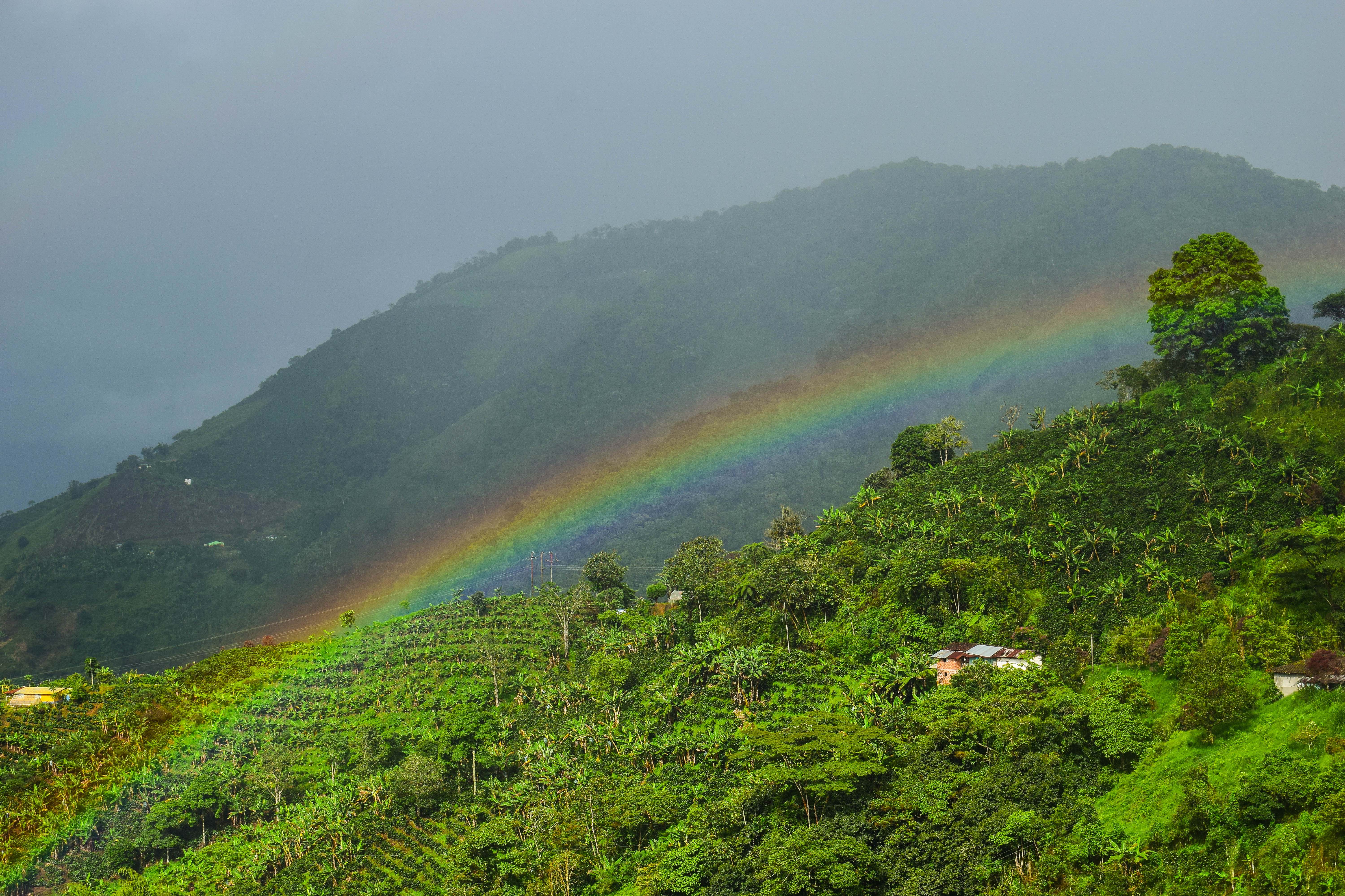 El Águila, Valle del Cauca. Fundado en 1899, por Emelecio Duque, Marcelino Echeverri y los hermanos Bernardo y Natalio Serna. Municipio desde 1950. Economía importante en agricultura, ganadería, caficultura, riqueza natural, etc. Observamos en la imagen, arcoíris sobre las montañas del Águila