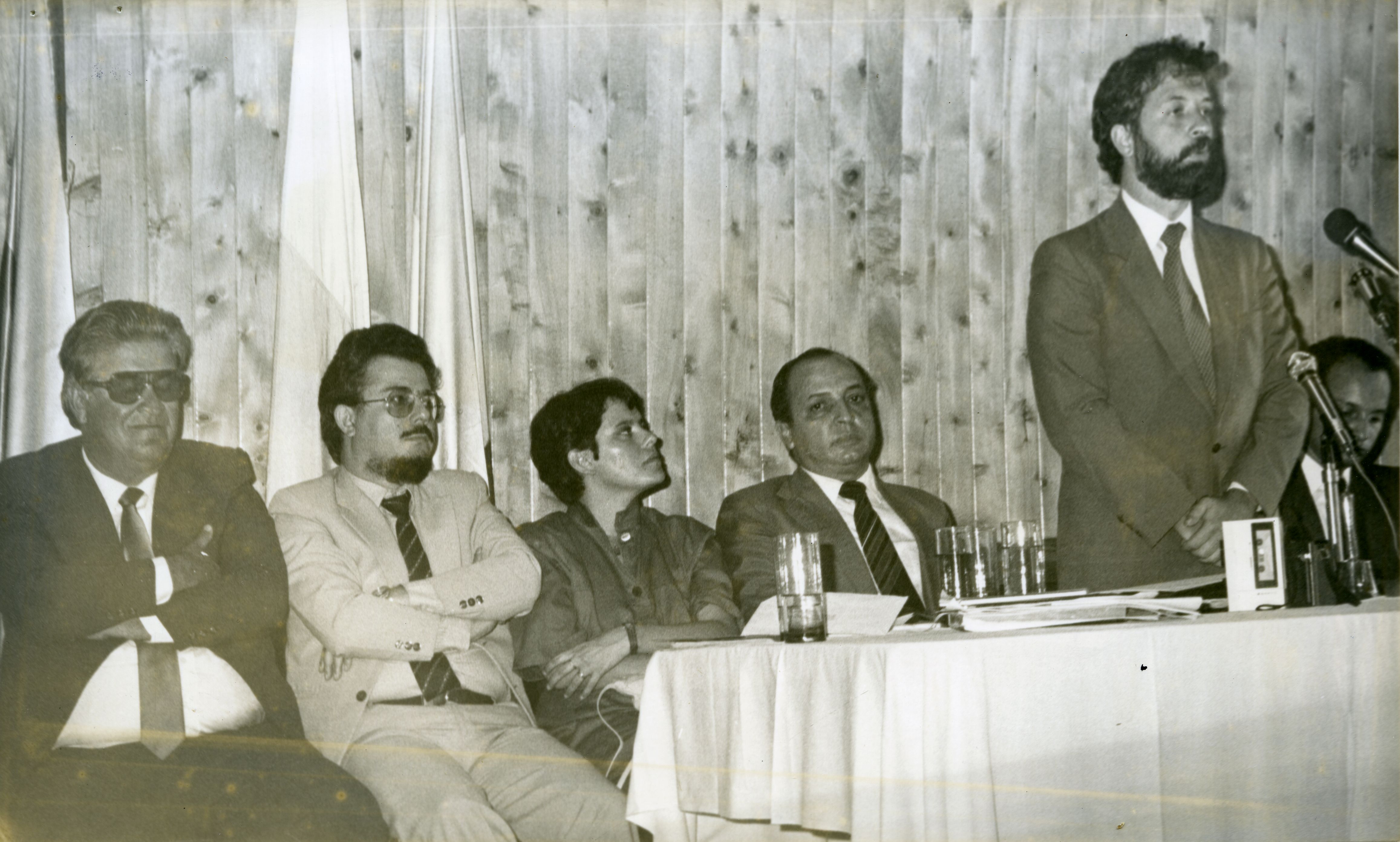 En la gráfica se observa un grupo de personas entre ellos a Manuel Francisco Becerra