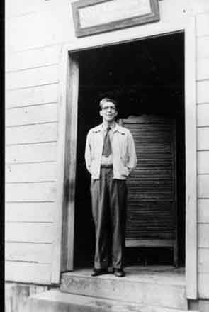Elias Londoño dentista de La Cumbre en el pórtigo de su consultorio. La Cumbre 1948.