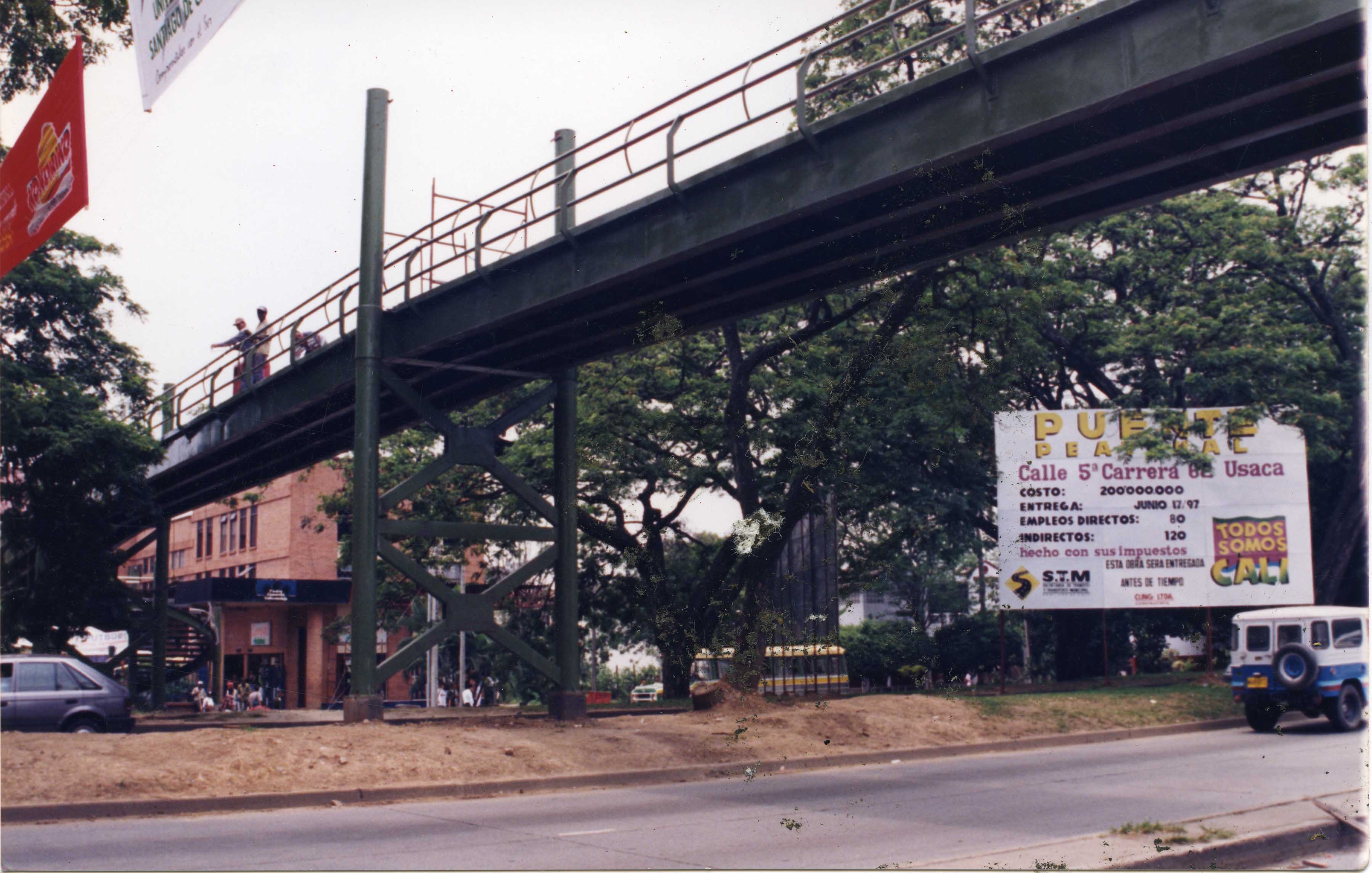 Diario Occidente (1997). Puente peatonal frente a la USACA. Santiago de Cali: Biblioteca Departamental Jorge Garcés Borrero.