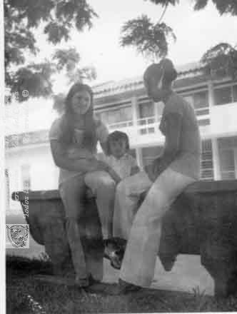 Las Hemanas: Nelly, Gloria Amaparo y Lucy Moriones de paseo por el parque principal. Rio Frio, C. 1972.