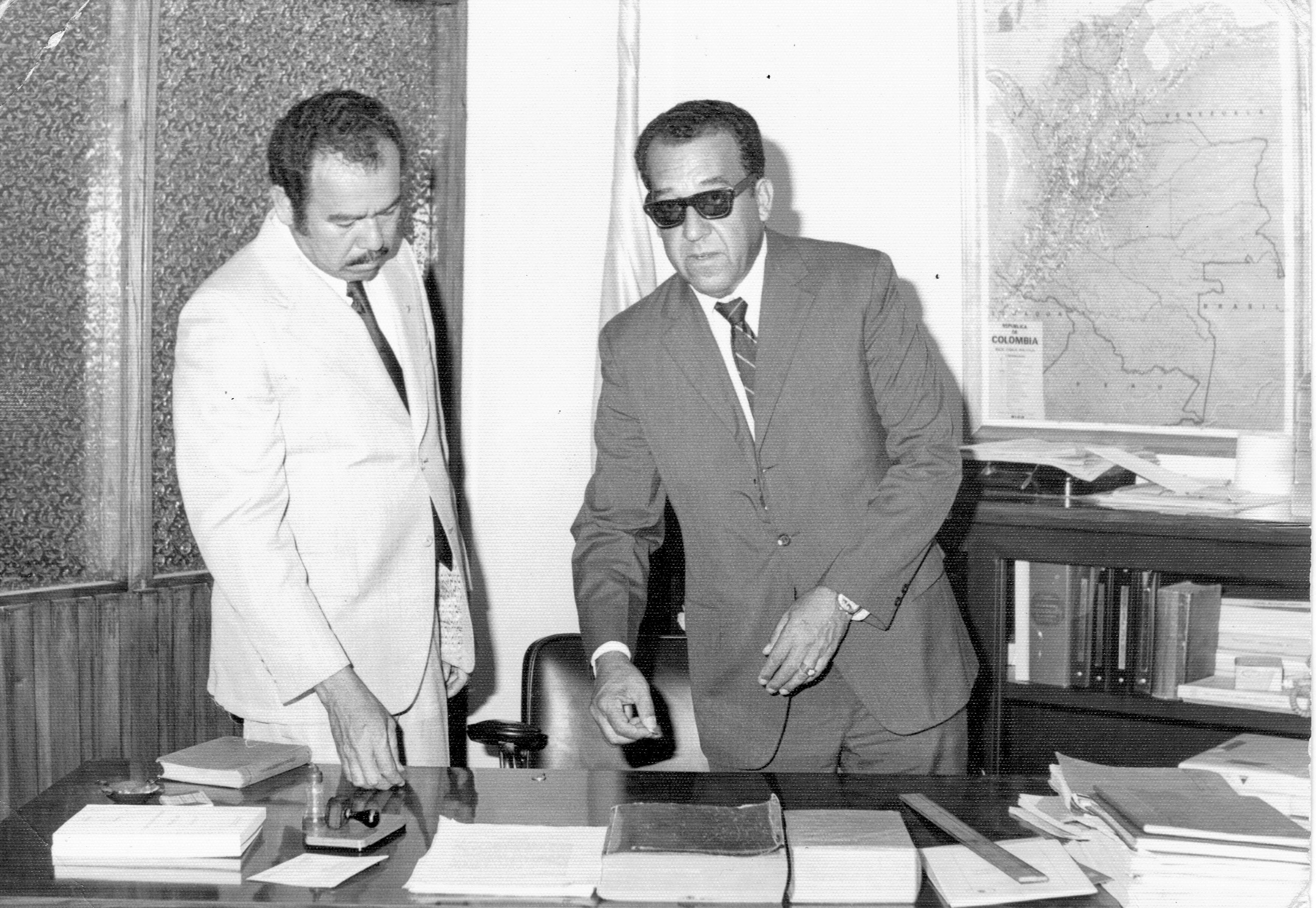 Alcaldía de San Pedro. posesión del alcalde Fernel Lozano. Se aprecia recibiendo las llaves del despacho del alcalde saliente el señor Alberto Escobar Cuervo