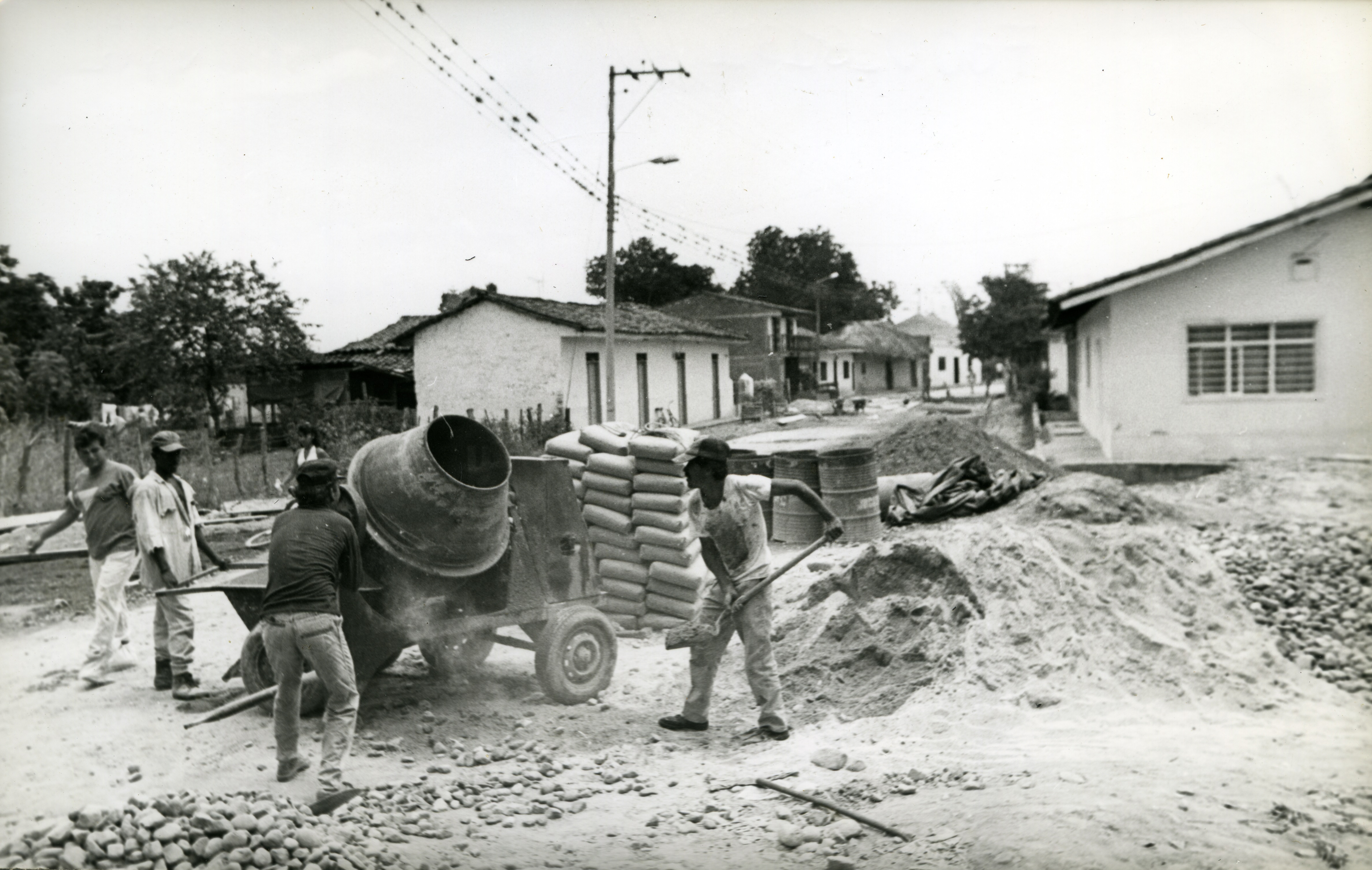 Obreros en pavimentación de vías en Villagorgona, Candelaria.