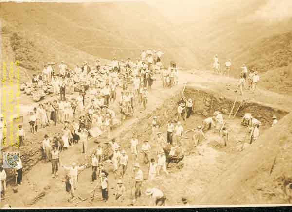 obreros en la construcción de la carretera La Unión - Versalles. 1937