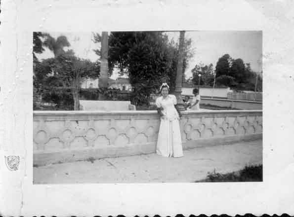 Panorámica de la plaza. Nótese la vestimenta de Elia, alegórica a las mujeres vallecaucanas del siglo XIX. 1950