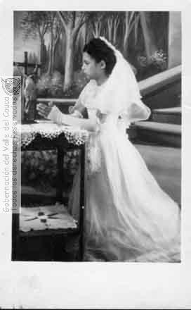Fanny cardona en su traje de boda. Zarzal, C. 1955