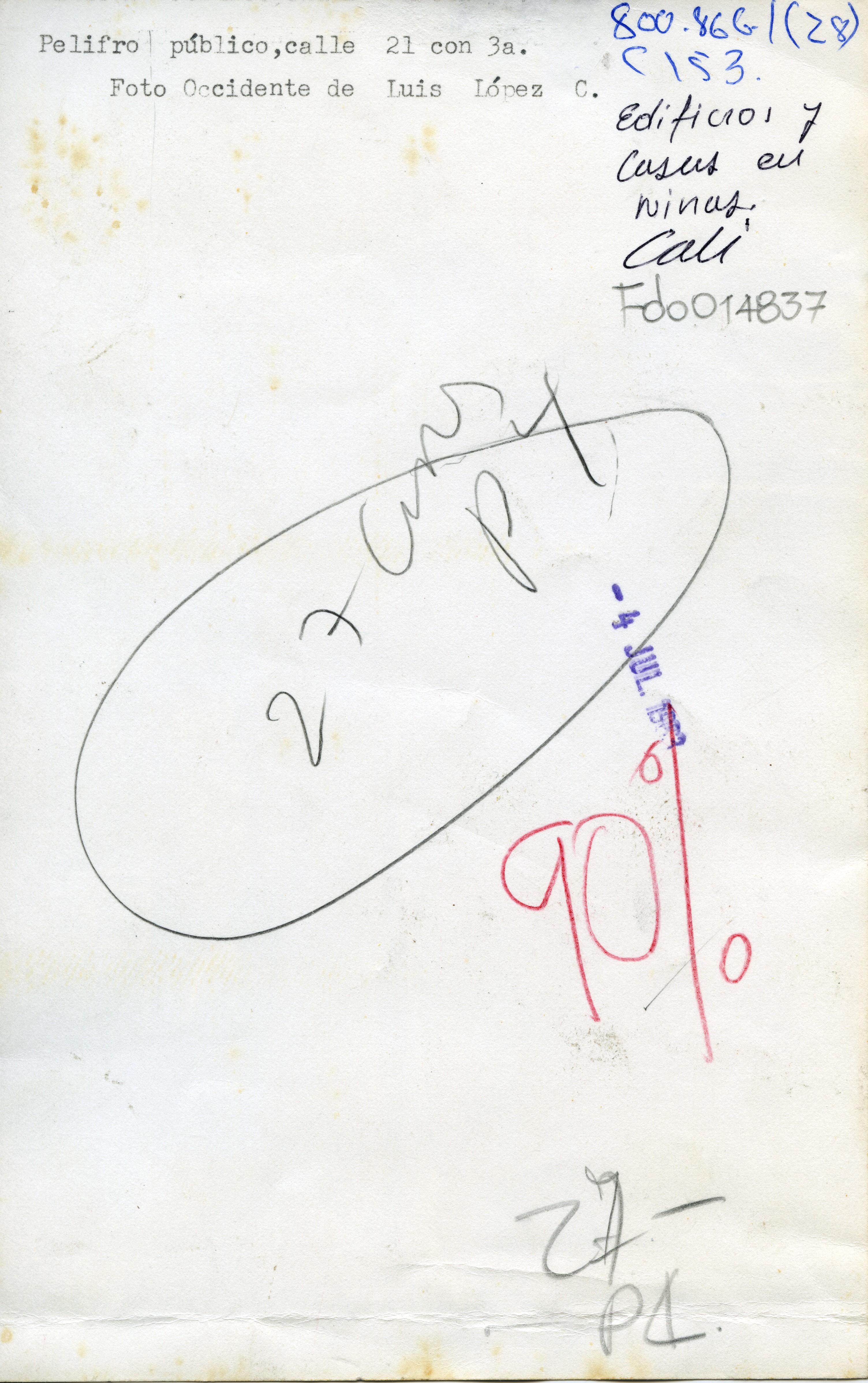 Fotografía alusiva al tema de los edificios y casas en ruinas en Cali. Observamos en mal estado la casa ubicada en la calle 21 con 3a.