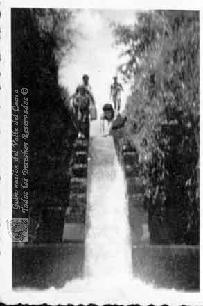 s. n., s. n., s. n. & s. n. (1970). La velocidad y la fuerza con que baja el agua de esta canal ha sido siempre un reto para los mejores nadadores del pueblo; en los veranos de los años sesentas y setentas grupos de adolescentes se disputaban el sitio a punta de demostrar quiénes clavaban y braceaban mejor & 103556. BUGALAGRANDE: Biblioteca Departamental Jorge Garces Borrero.