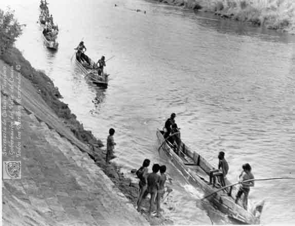Foto El Pais (1976). Areneros del río La Vieja, Cartago, 1976 & 600208. OTRO: Biblioteca Departamental Jorge Garces Borrero.