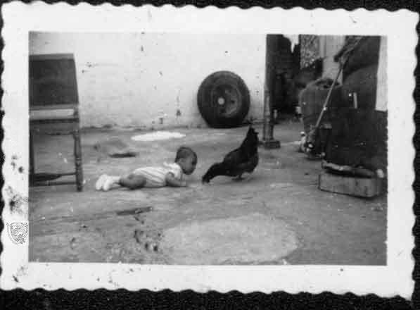 Aprendiendo a gatear con las mascotas de la casa. Cartago, 1958.
