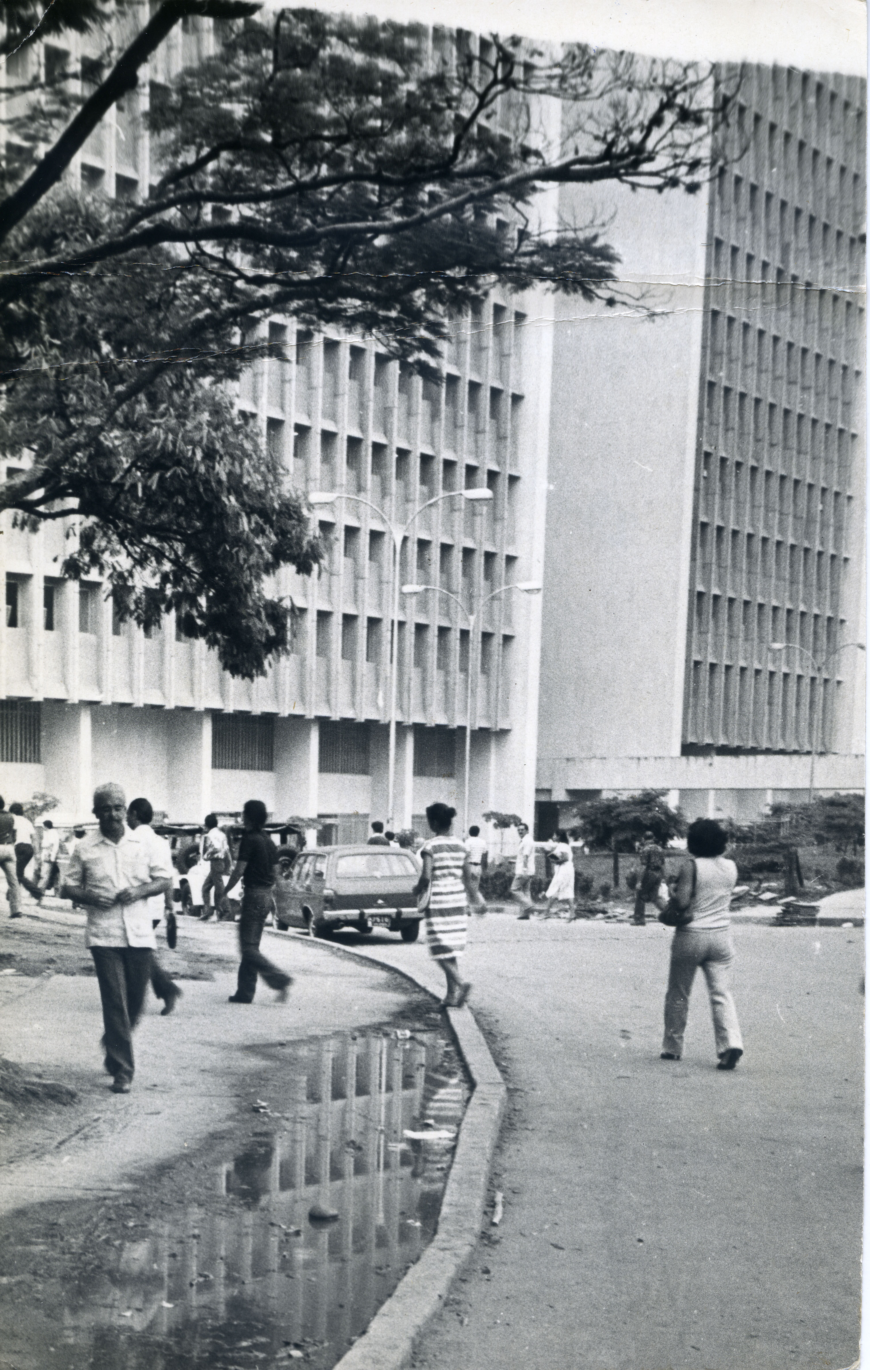 Edificio del CAM desde la Avenida 2N y transeúntes