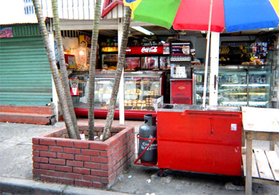Plano de contexto. Exterior día. Tienda. Predominio de rojos.