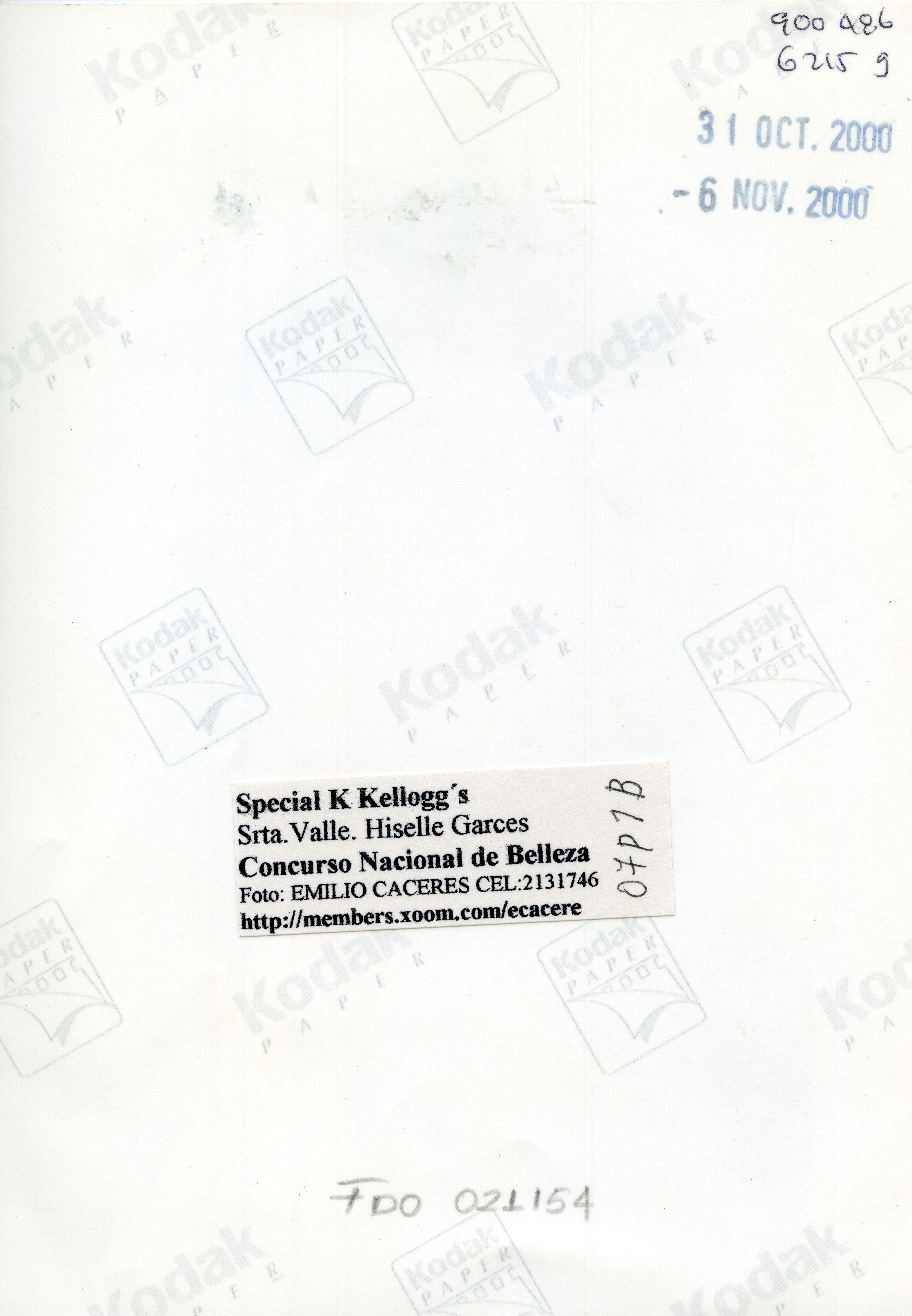 Reverso: Special K kellgg's. Srta. Valle. GiselleGarcés. Concurso Nacional de Belleza. Foto: Emilio Cáceres Cel. 2131746. http://members.x00m.com/ecacere