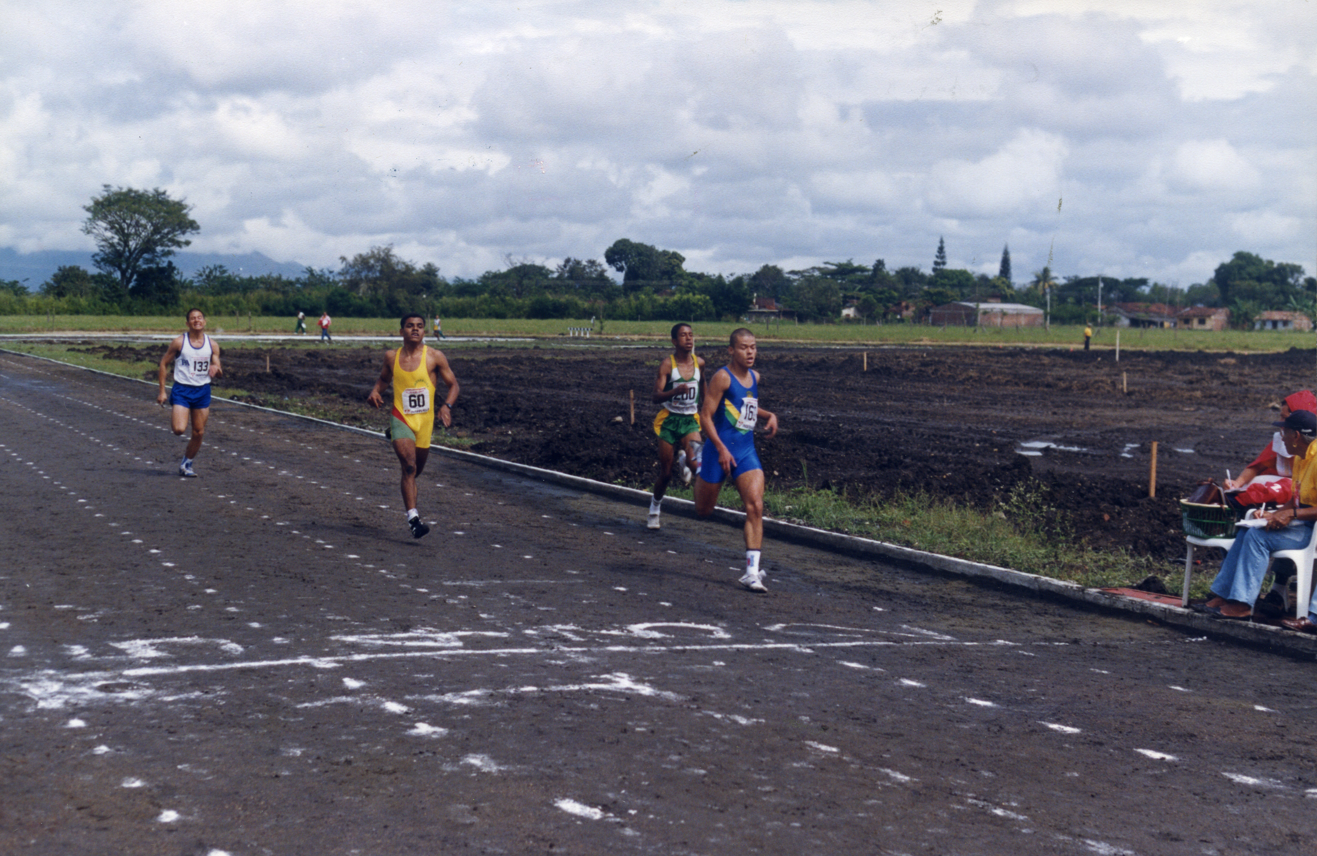 Información al reverso: El atleta Carlos Robledo de Roldanillo, se colgó una de las siete medallas de oro que sumó su patria chica. Robledo ganó los 100 metros planos.