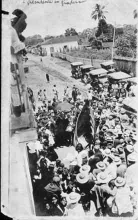 Entrada de la caravana que acompañaba al presidente de la República Marco Fidel Suárez, al corregimiento de Amaime