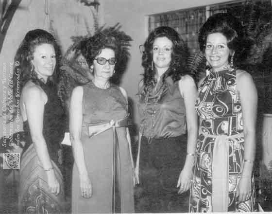 Blanca, Rosa Elena Sardi de Verghara, Nora y Alicia Sardi Vergara. Los peinados de estas damas al igual que sus vestidos nos muestran la moda de los años 70.