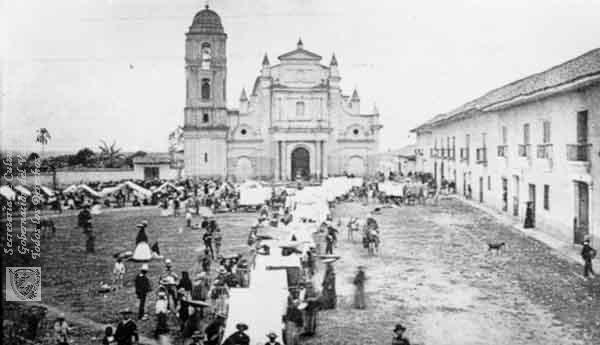 Día de mercado, en la Plaza de Cayzedo llamada en ese entonces Plaza de la Constitución