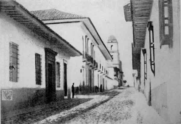 FOTO RIVERA Y GARRIDO (1885). Calle San Juan de Dios, Cali, 1885 & 102879. SANTIAGO DE CALI: Biblioteca Departamental Jorge Garces Borrero.
