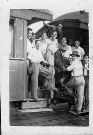 Grupo de obreros de los talleres de Chipichape en uno de los vagones del tren