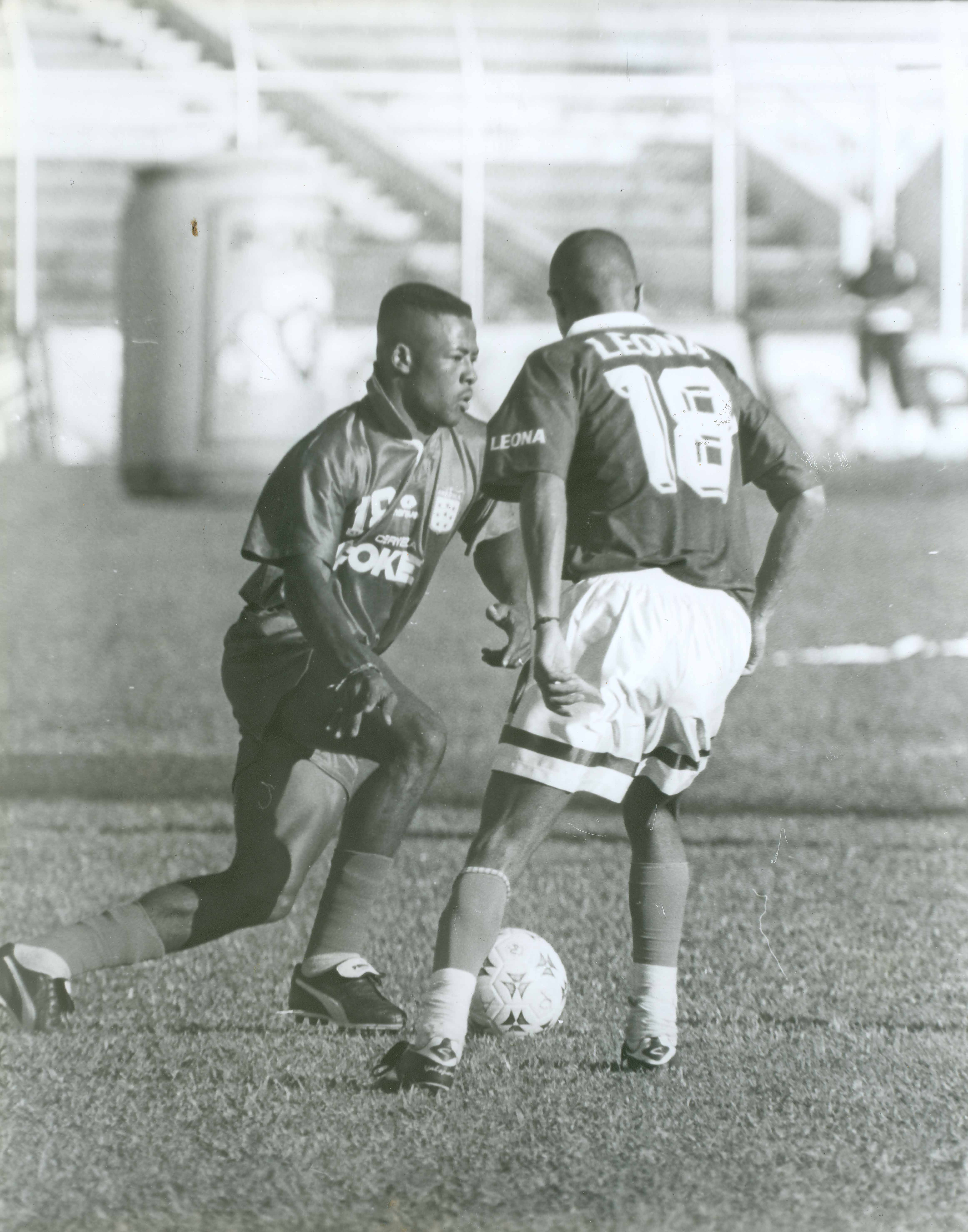 Chavarro, C. & Diario Occidente (1997). Jairo “el Tigre” Castillo, jugador del América de Cali, en partido de fútbol. Santiago de Cali: Biblioteca Departamental Jorge Garcés Borrero.