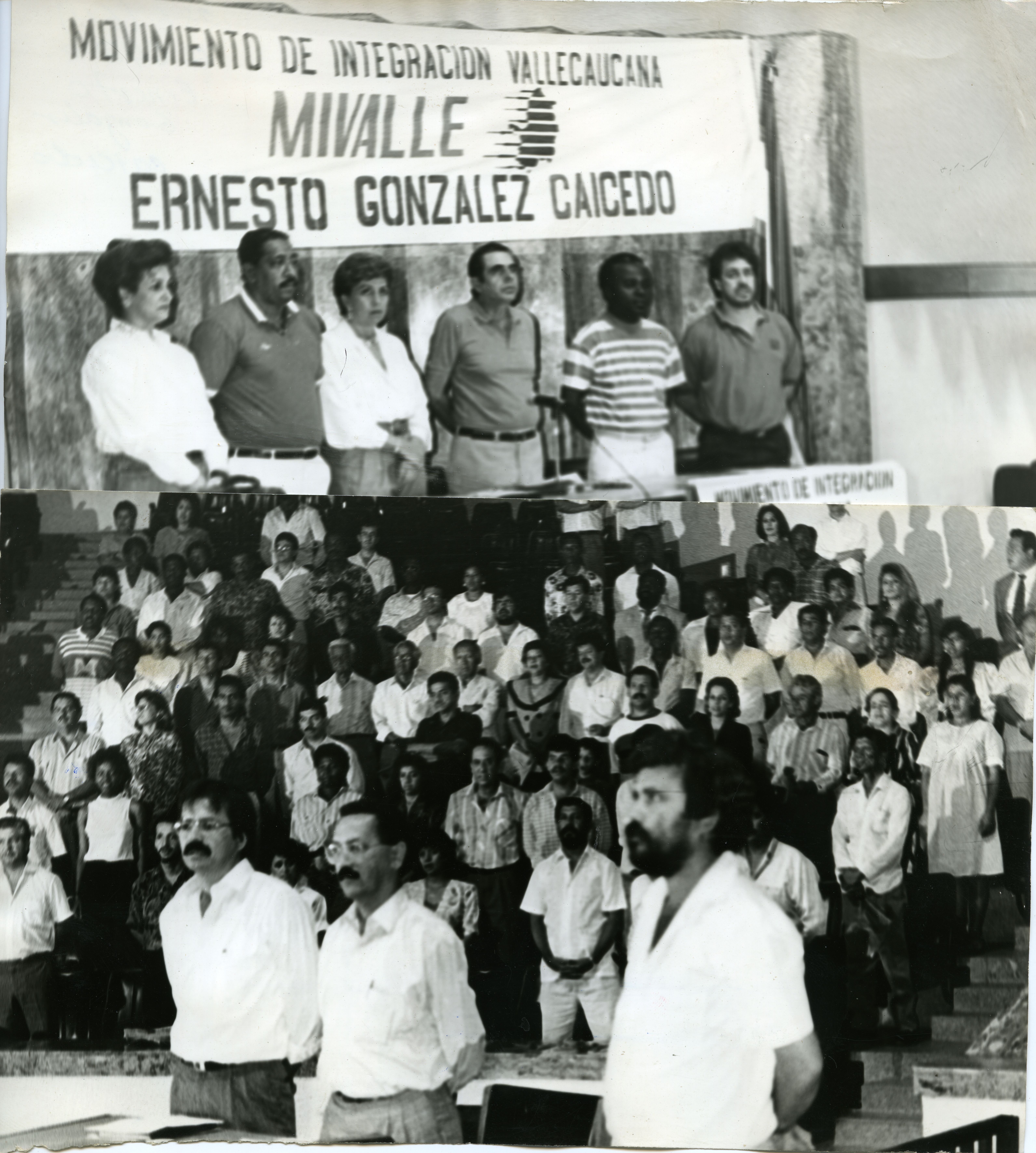 En la foto se observa al mandatario Ernesto Gonzalez Caicedo junto a otras personas, en la parte de atras se ve una pancarta alusiva al movimiento de integración vallecaucana, Mivalle