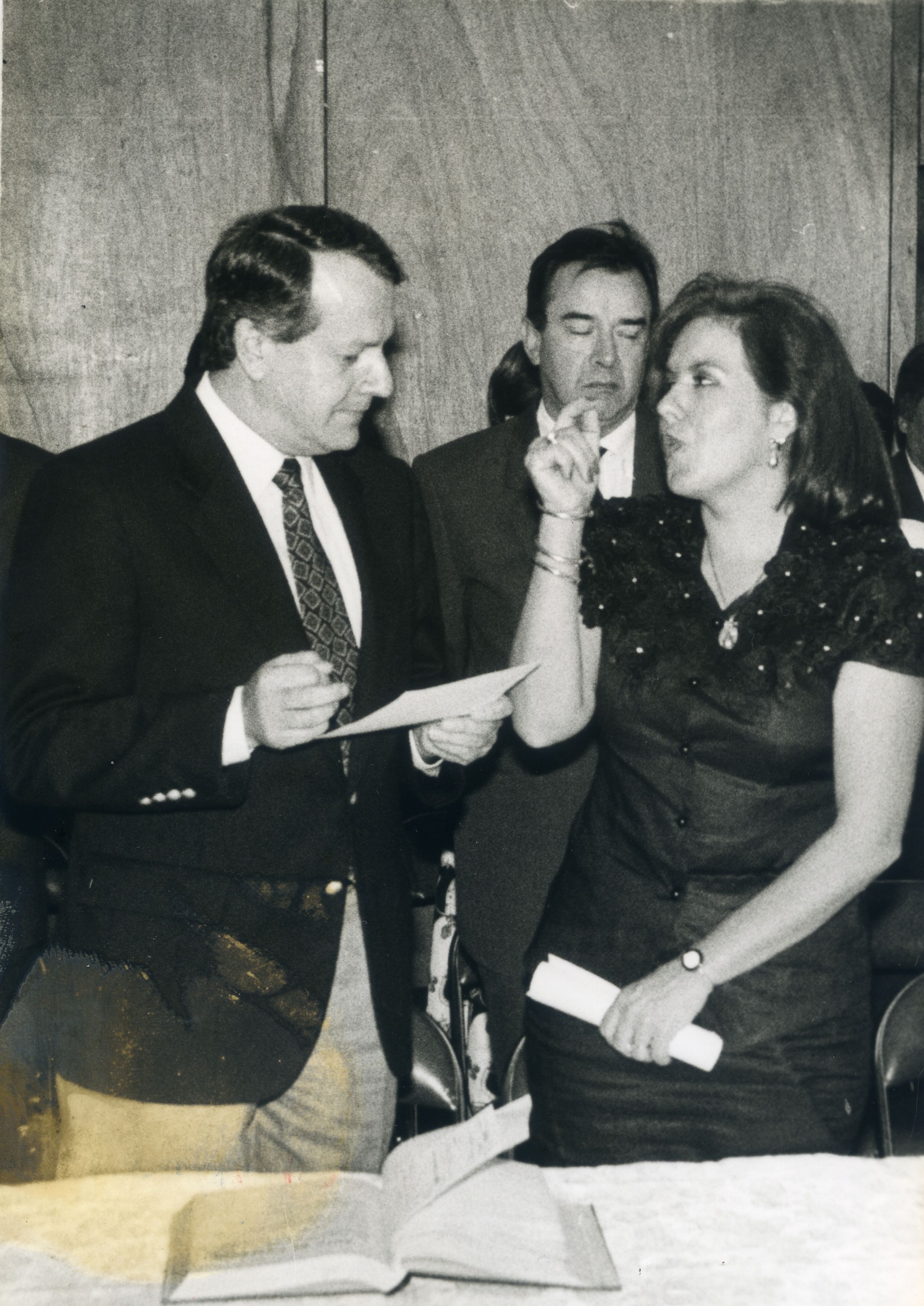 En la fotografía podemos apreciar a la secretaria de Gobierno Municipal de Cali, Ana Milena Cerón de Valencia, en lo que parece ser un importante eento.