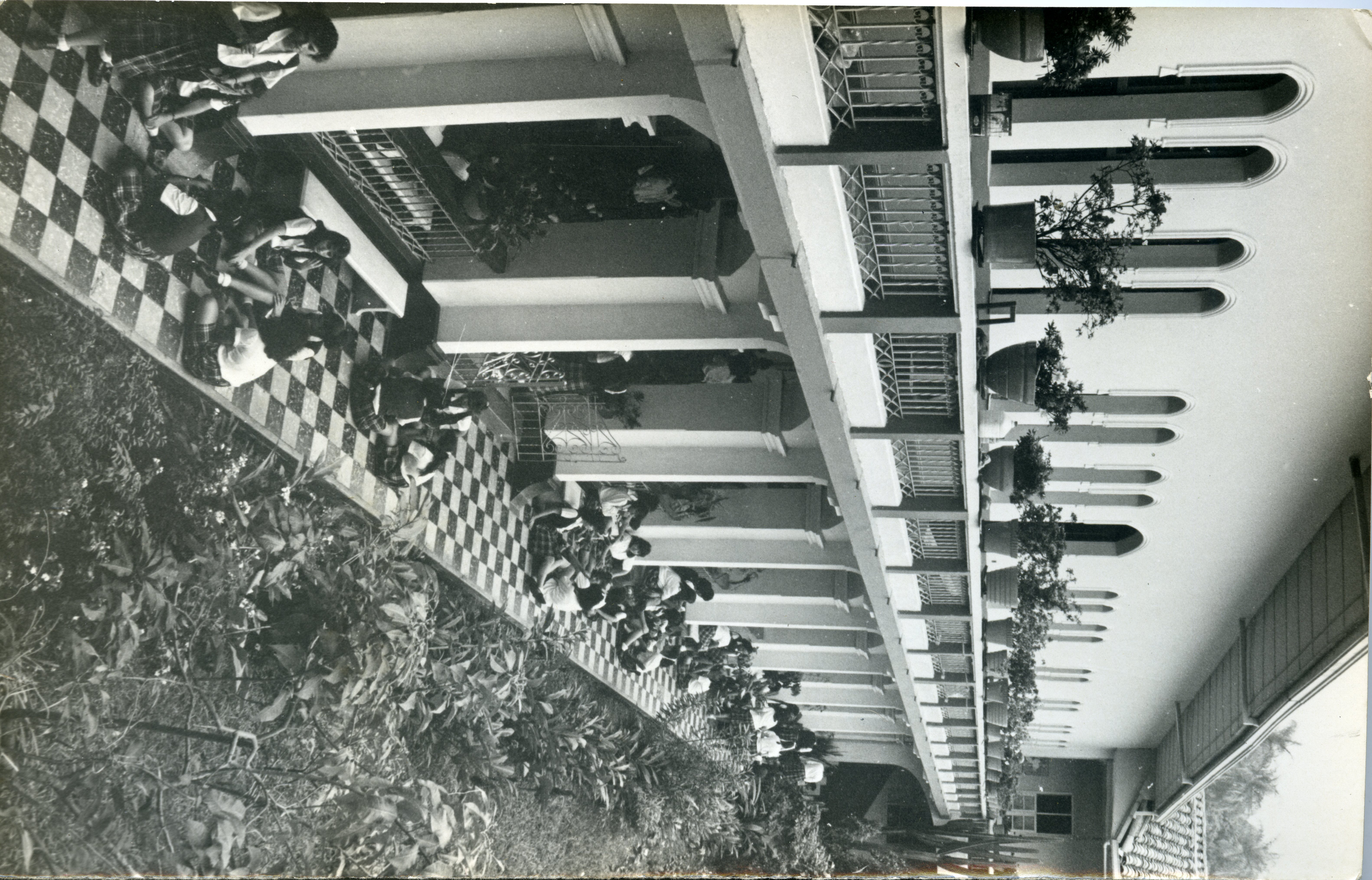 Primer Colegio Femenino de Cali. Fundado por las Hermanas de la Providencia y de la Inmaculada Concepción desde 1907. Se aprecia en el interior estudiantes y la fachada del Colegio
