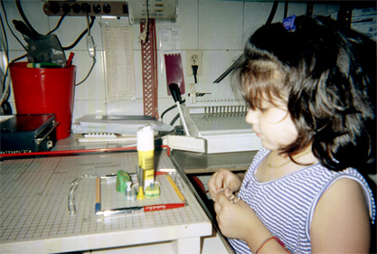 | dc.description | Imagen de una niña jugando con implementos de oficina. Plano medio. Imagen tomada con flash. | spa |