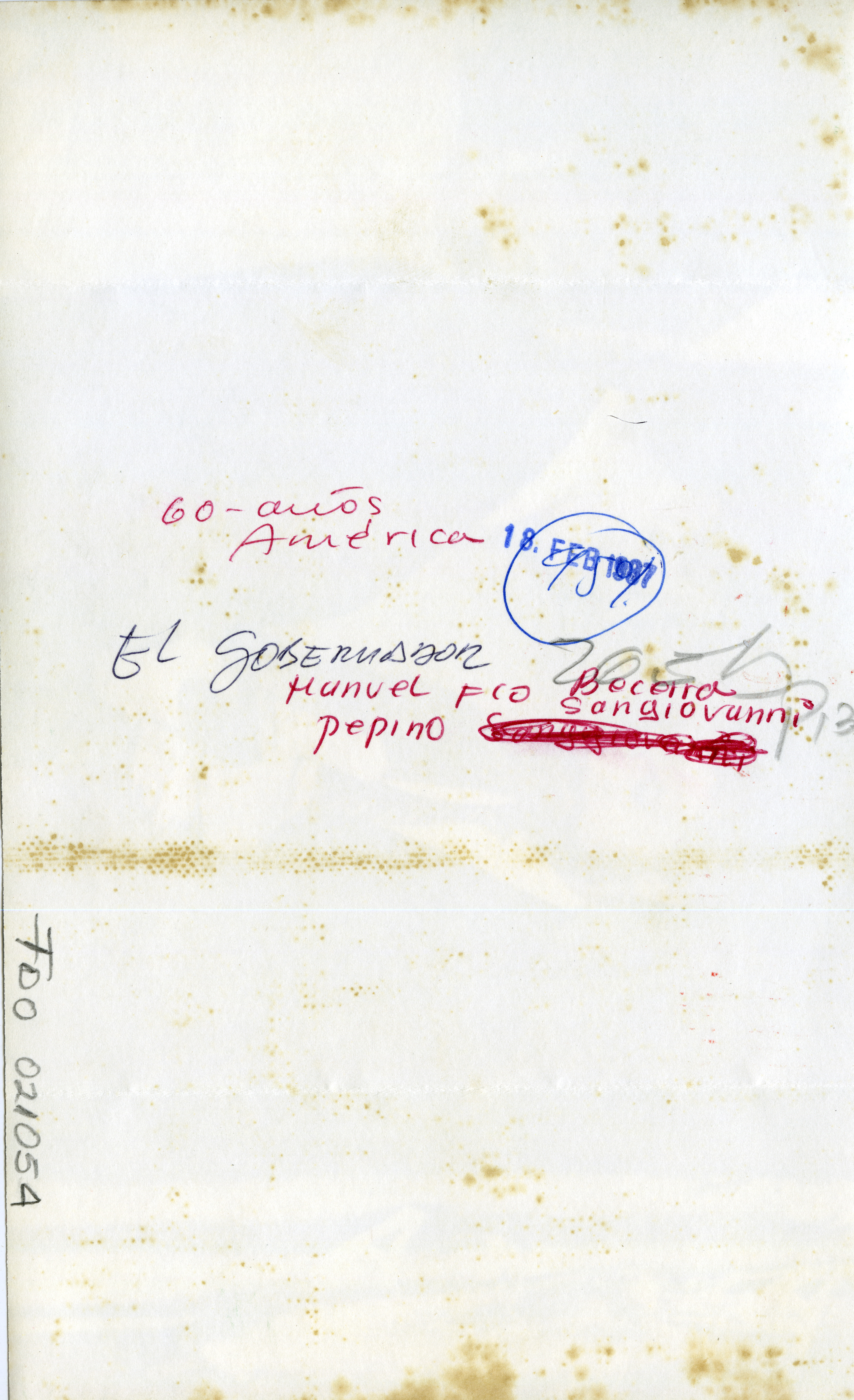 60 años del América. Manuel Francisco Becerra, gobernador y José Sangiovanni Russo, presidente América de Cali. Se aprecia al gobernador Becerra entregando detalle a Sangiovanni por la conmemoració del equipo escarlata