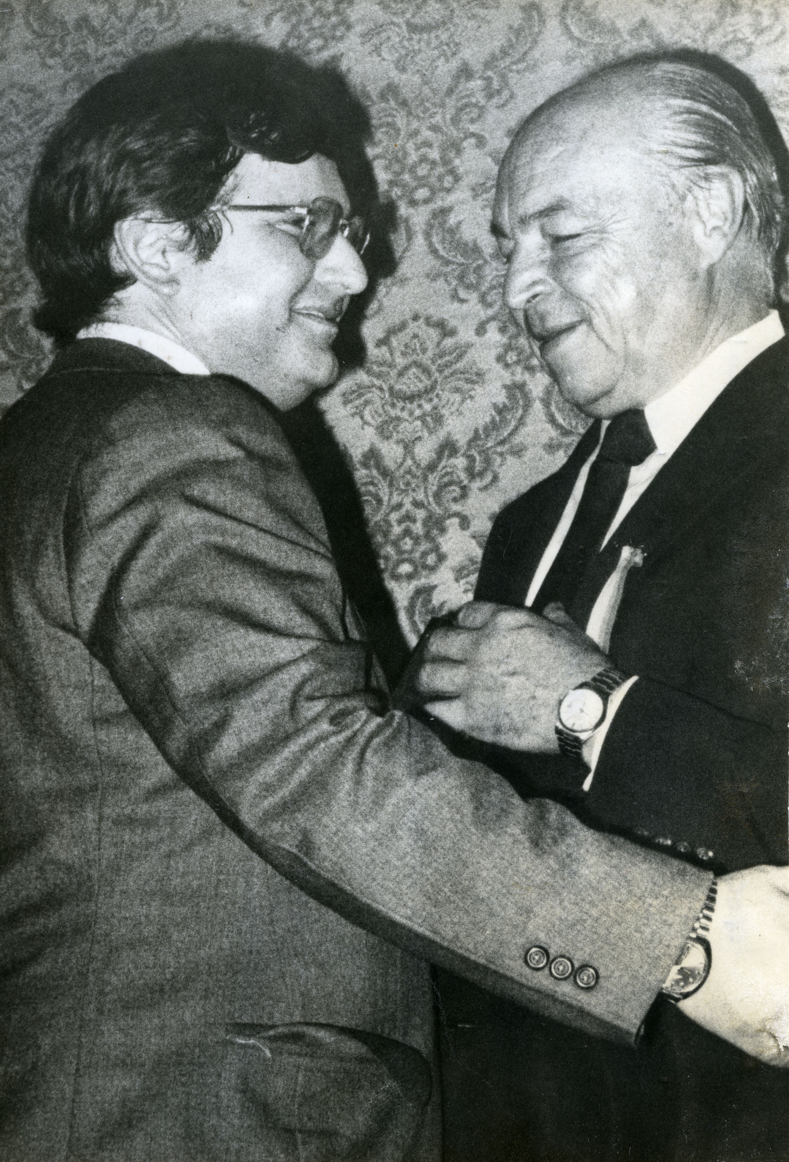 Luis Fernando Londoño Iragorri. Aspecto del momento de felicitación del presidente de la federación electrónica de Colombia al doctor Luis Fernando Londoño Iragorri, en el momento de la entrega de una placa conmemorativa de la federación a Sharp con motivo de sus 20 años
