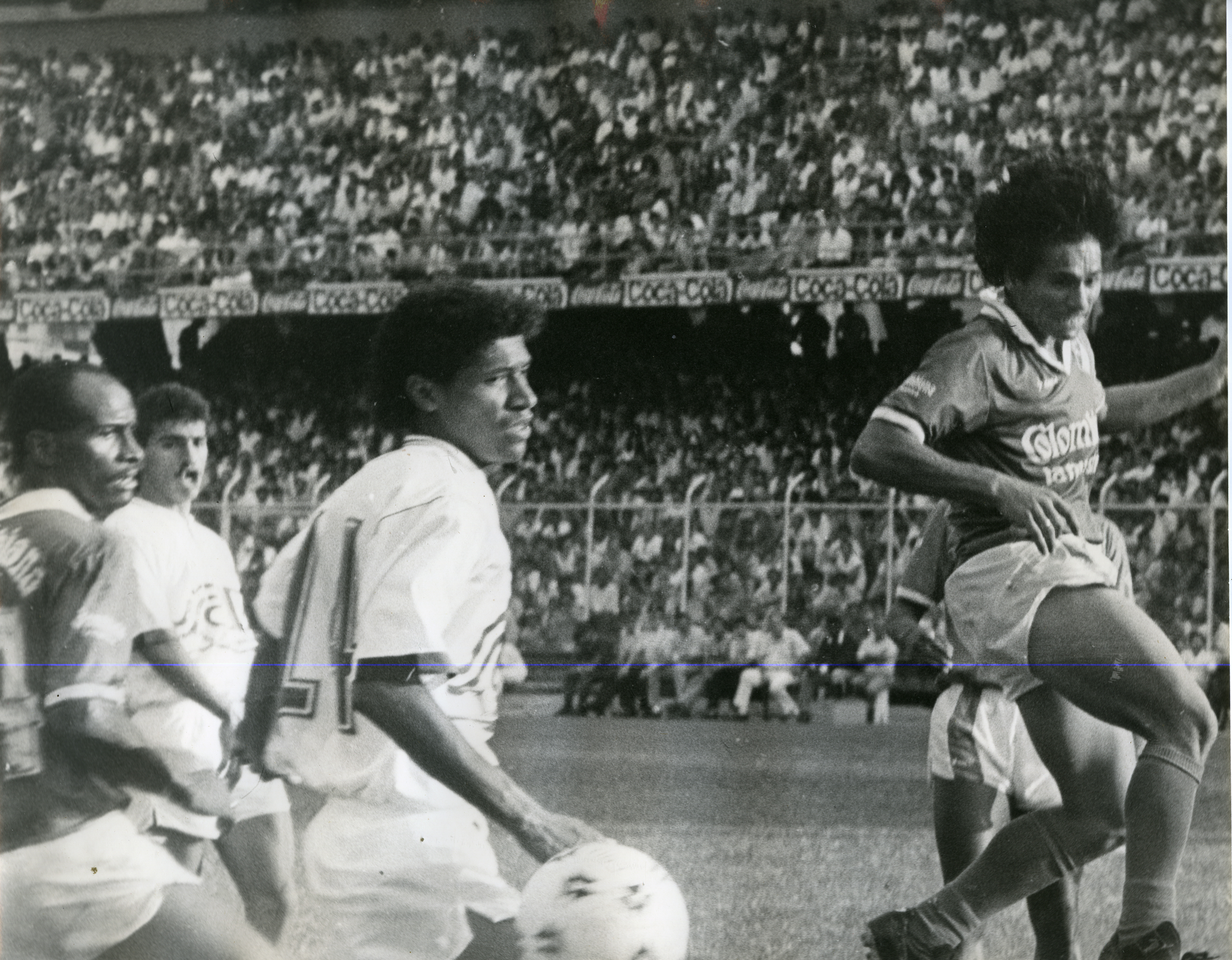 Deportivo Cali perdió frente al Nacional 2-1 ayer en el Pascual. Se aprecia a Carlos "La Gambeta" Estrada y Herman "El Carepa" Gaviria en escena durante el partido