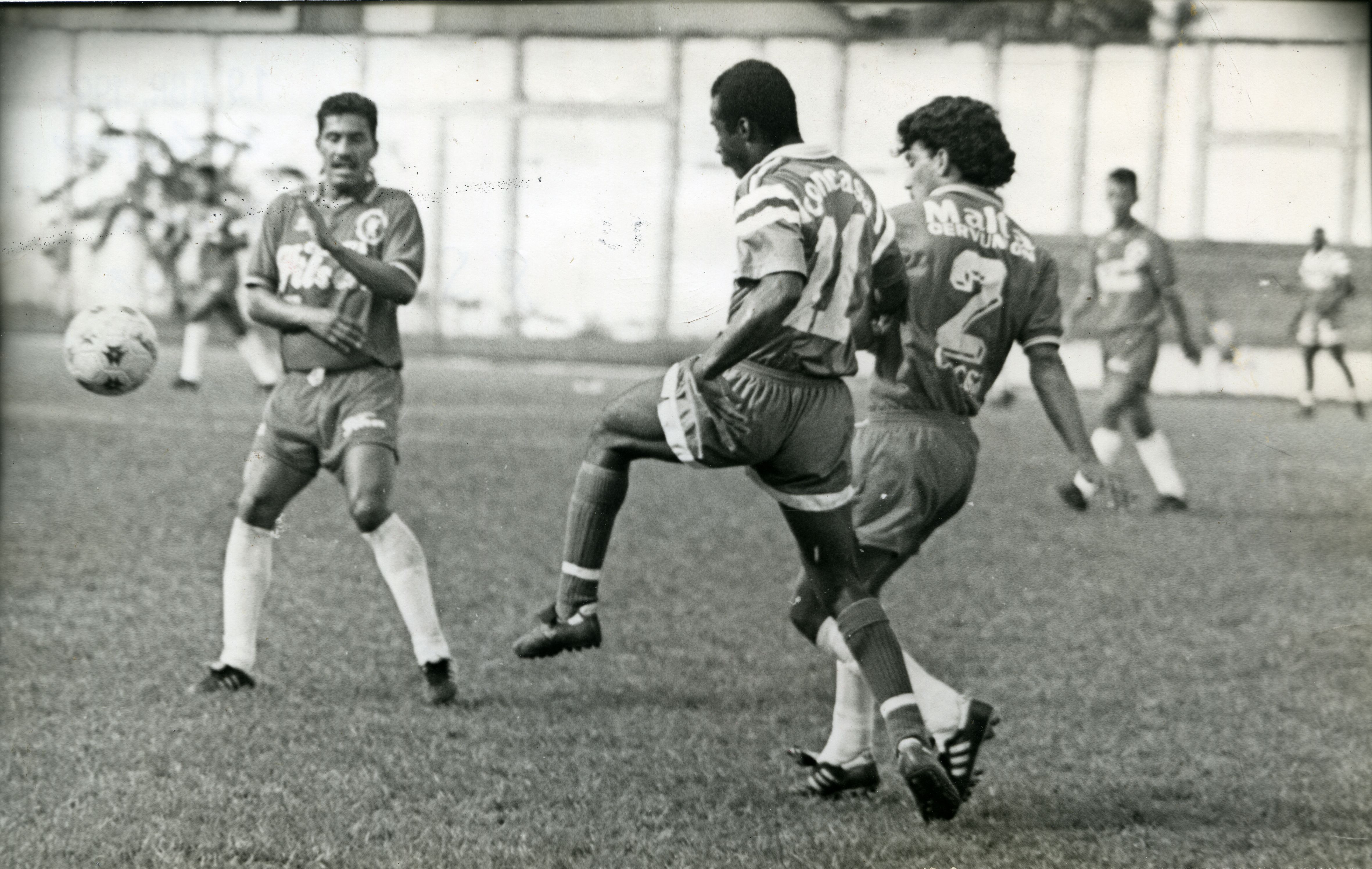 En la gráfica partido de fútbol entre los equipos Guadalajara y Rionegro de la primera B. Se aprecia jugadores en disputa del balón