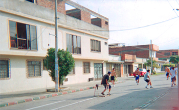 | dc.description | Hombres jugando un partido de fútbol callejero. Toma diagonal. Al lado izquierdo residencias. Exterior día. Plano general. | spa |