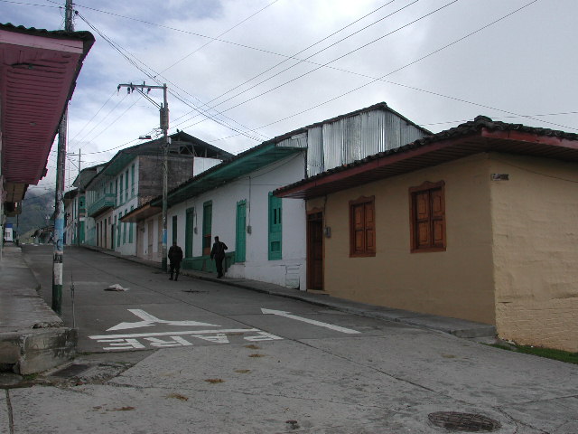 El Cairo, Valle del Cauca. Fundado en 1920, por Pedro Arango y otros. Nombres: Las Vueltas, Haceldama. Municipio desde 1947. Economía importante en agricultura, caficultura, entre otros. Observamos en la imagen, espacio urbano. Apreciamos casas típicas con cada uno de los elementos de la arquitectura. Carrera 5, subiendo para el alto de la cruz, ahora El Mirador. Apreciamos dos policías