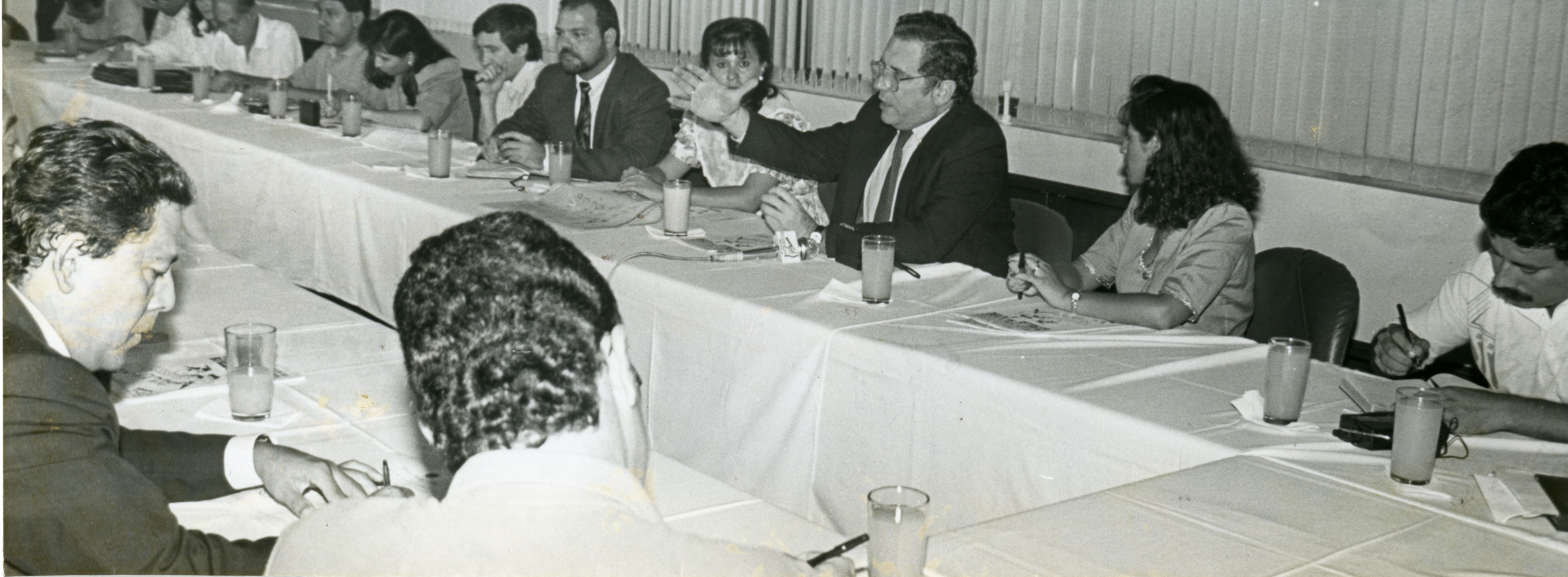 El gobernador Carlos Olguín Sardi, en reunión sostenidad con representantes de los medios de comunicación, al referirse de los Juegos Intercolegiados "Estrellas del Futuro".