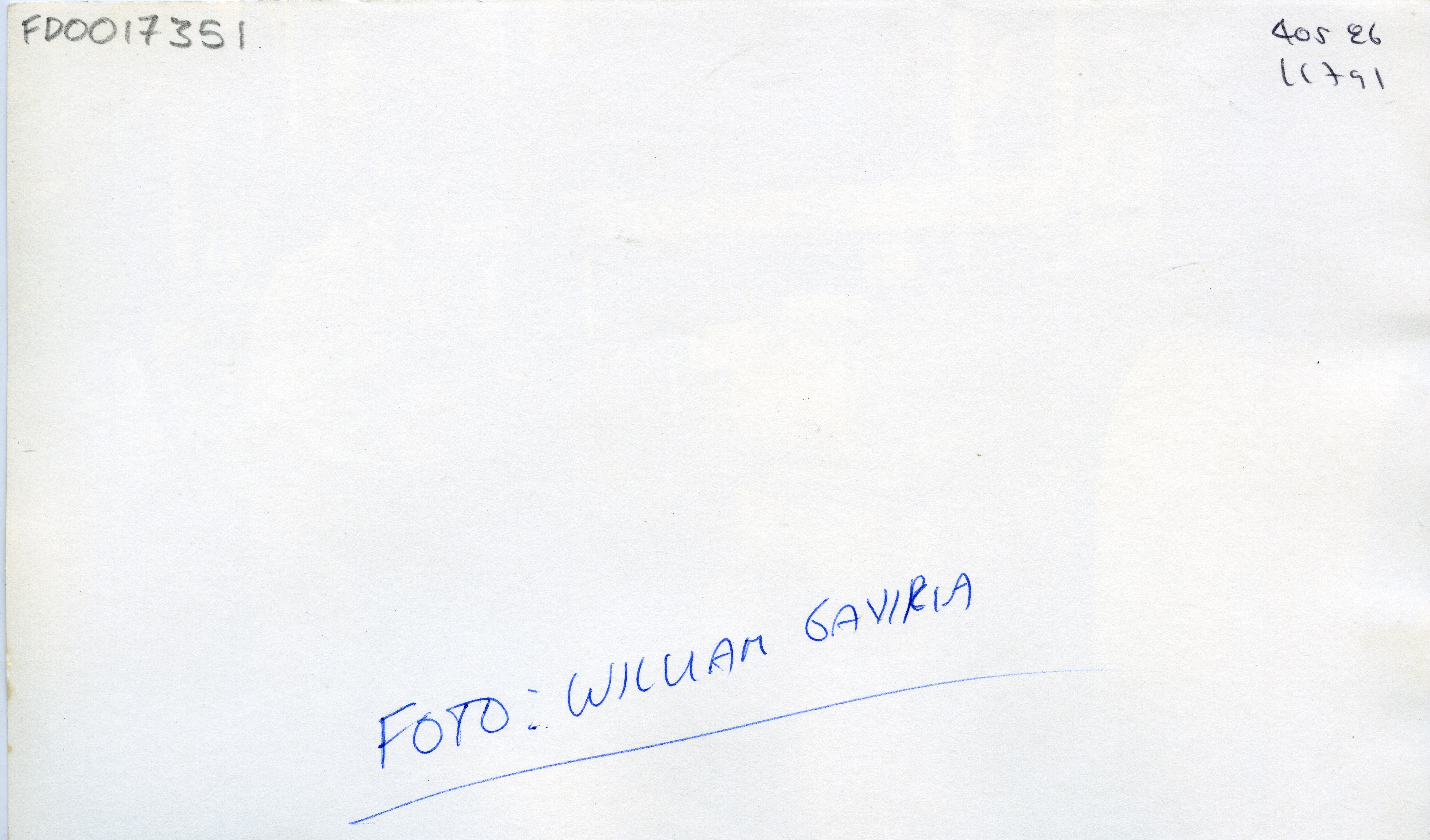 Proceso fabricación de llantas. Se puede apreciar operario en el proceso de fabricación de llantas. Nota en manuscrito reverso de la foto: Foto William Gaviria. Llantas