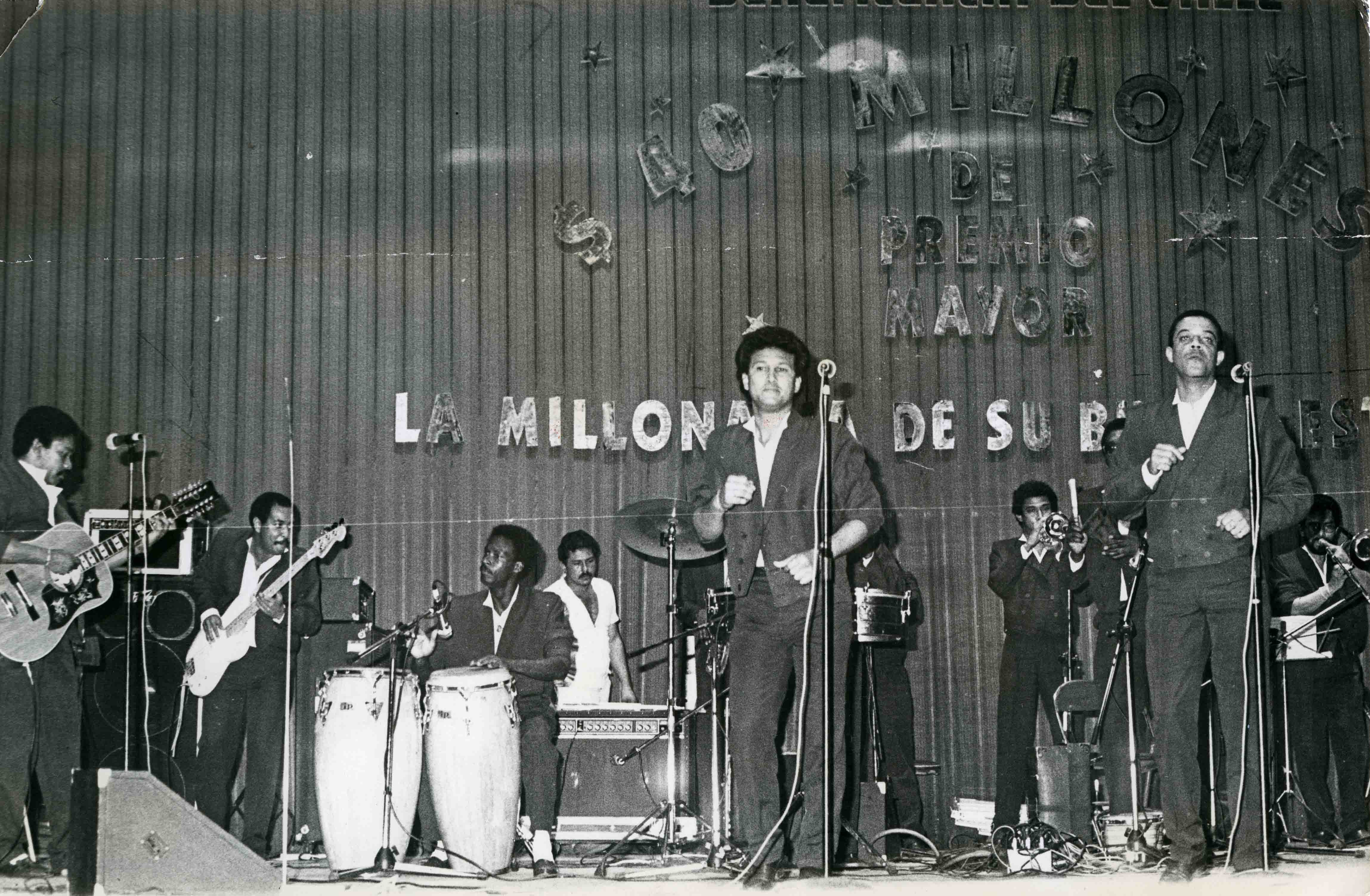 Definitivamente el grupo niche. Al lado derecho observamos al “maestro” Jairo Varela (1949-2012), en una de sus tantas presentaciones haciendo disfrutar al mundo con su música la salsa // El Archivo del Patrimonio Fotográfico y Fílmico del Valle del Cauca es responsabilidad de la Biblioteca Departamental del Valle Jorge Garcés Borrero, por convenio de cooperación suscrito con la Secretaría de Cultura Departamental, con el fin de aunar esfuerzos para su conservación, preservación y divulgación del Archivo entre la comunidad Vallecaucana, especialmente entre los estudiantes e investigadores que visitan la Biblioteca, propiciando su uso y consulta permanente. La universidad Icesi es un colaborador en el proceso de difusión, facilitando la tecnología que permite la consulta de las imágenes.