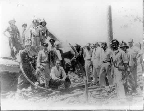 Bomberos yumbeños en algunos escombros dejados por la explosión del 7 de agosto de 1956 en Santiago de Cali.