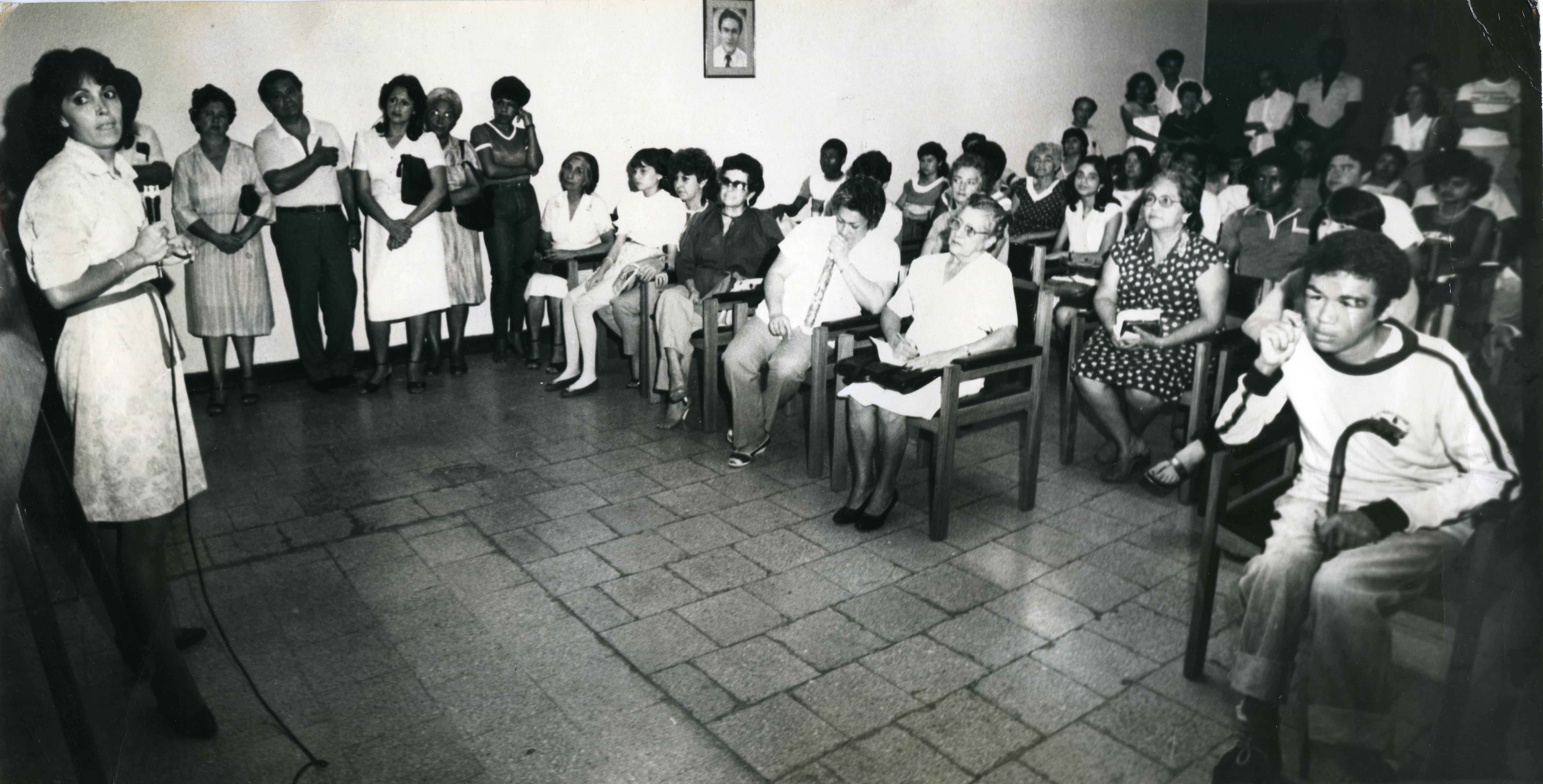Foto de los participantes de una conferencia sobre la epilepsia en el hospital psiquiátrico San Isidro.