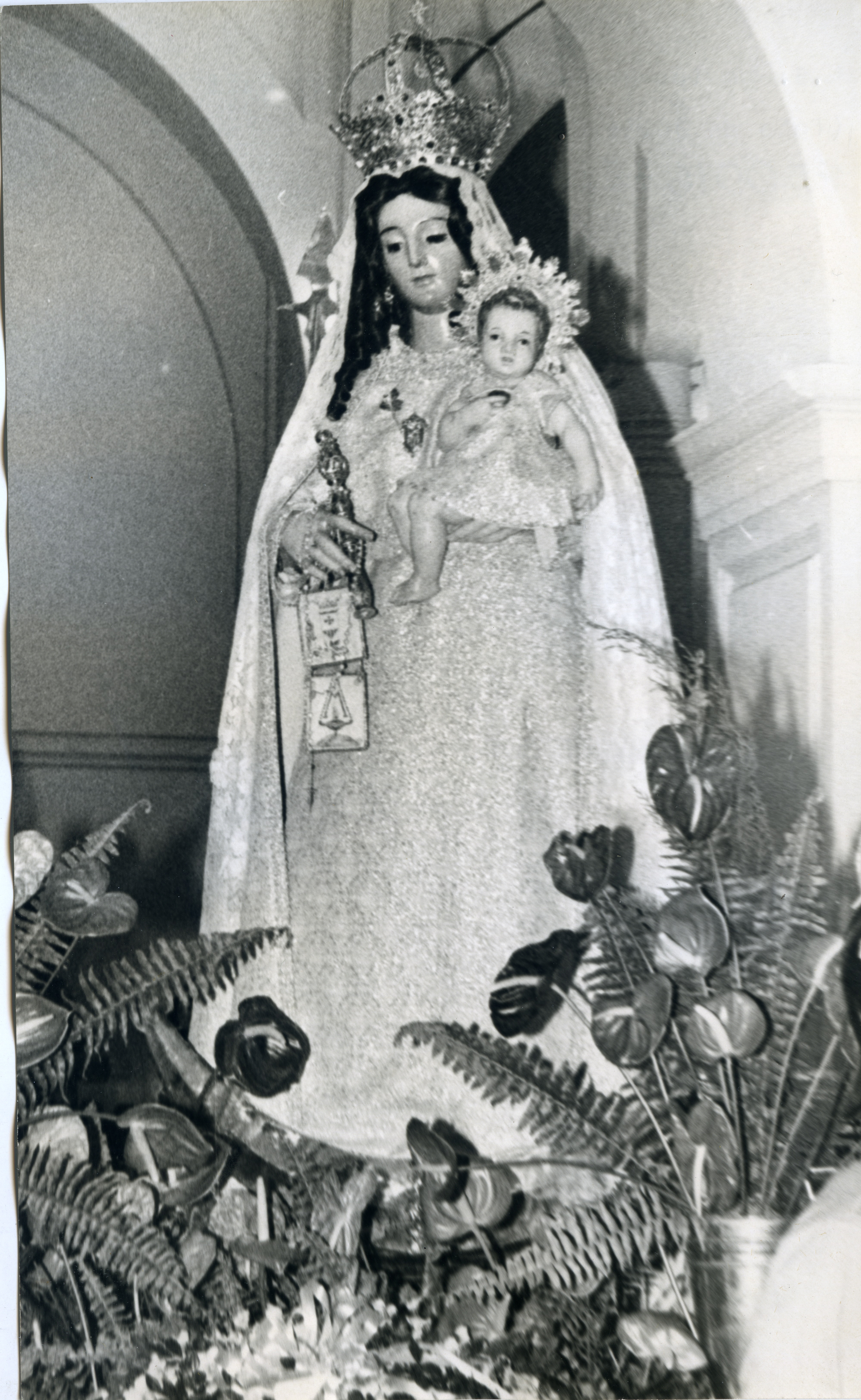 Figura o estatua religiosa de Nuestra Señora de los Remedios al interior de templo cristiano.