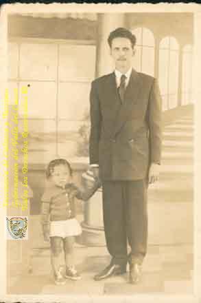 Helman Herrera y su hijo Pedro Herrera, caminando por las afuera de la casa. Florida, C. 1.952