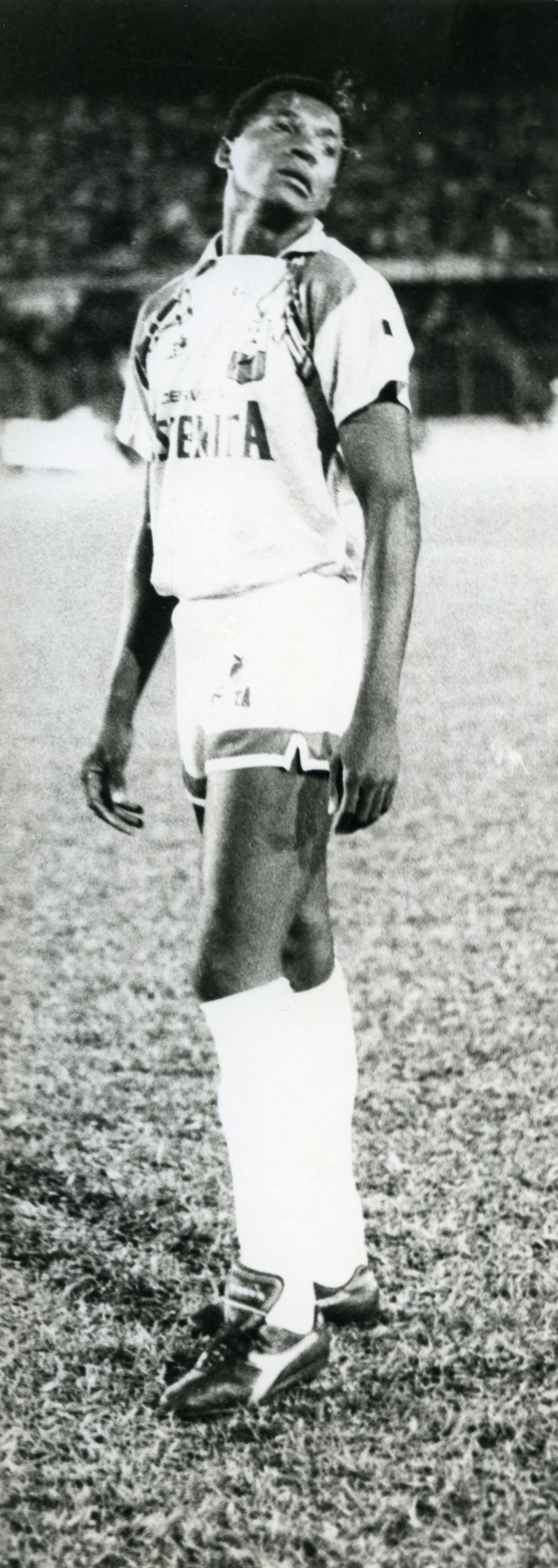 Enrique Simón Esterilla, jugador del Bucaramanga. Se aprecia al jugador Esterilla en la cancha antes del partido de fútbol