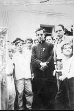 Presbítero Salvador Cano, demás personas por identificar. Trujillo. C. 1950.